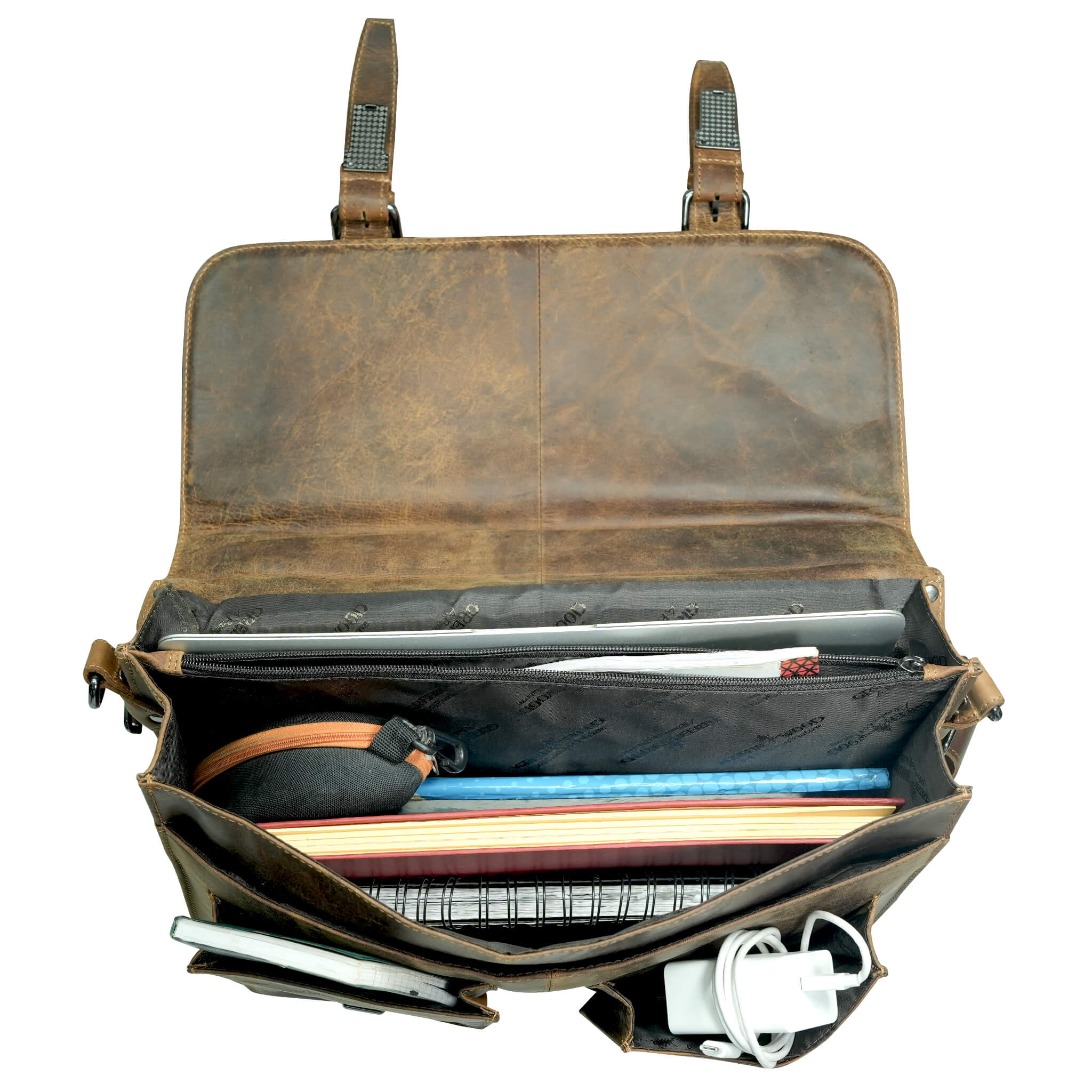 The collection goes well beyond shoulder bags. For a leather backpack with vintage appeal, the categories leather backpacks for women and leather backpacks for men are the right starting point. For business and the office, the Scott leather briefcase fits a laptop up to 15 inches and delivers a polished professional look in sandel. And for trips and weekend breaks, the leather weekender bags for women and leather weekender bags for men are worth a look.