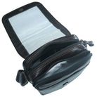 The Bath men's crossbody bag, available in black, combines stylish design with high functionality. It features two separate zippered main compartments, an additional interior pocket for valuables, and an organizer pocket under the flap. A zippered pocket is located on the front and back of the bag. It closes securely with a zipper and magnetic flap. The adjustable leather shoulder strap, lined with durable nylon, can be adjusted to any size and ensures optimal comfort. This crossbody bag is the ideal choice for men and women who value style and function.