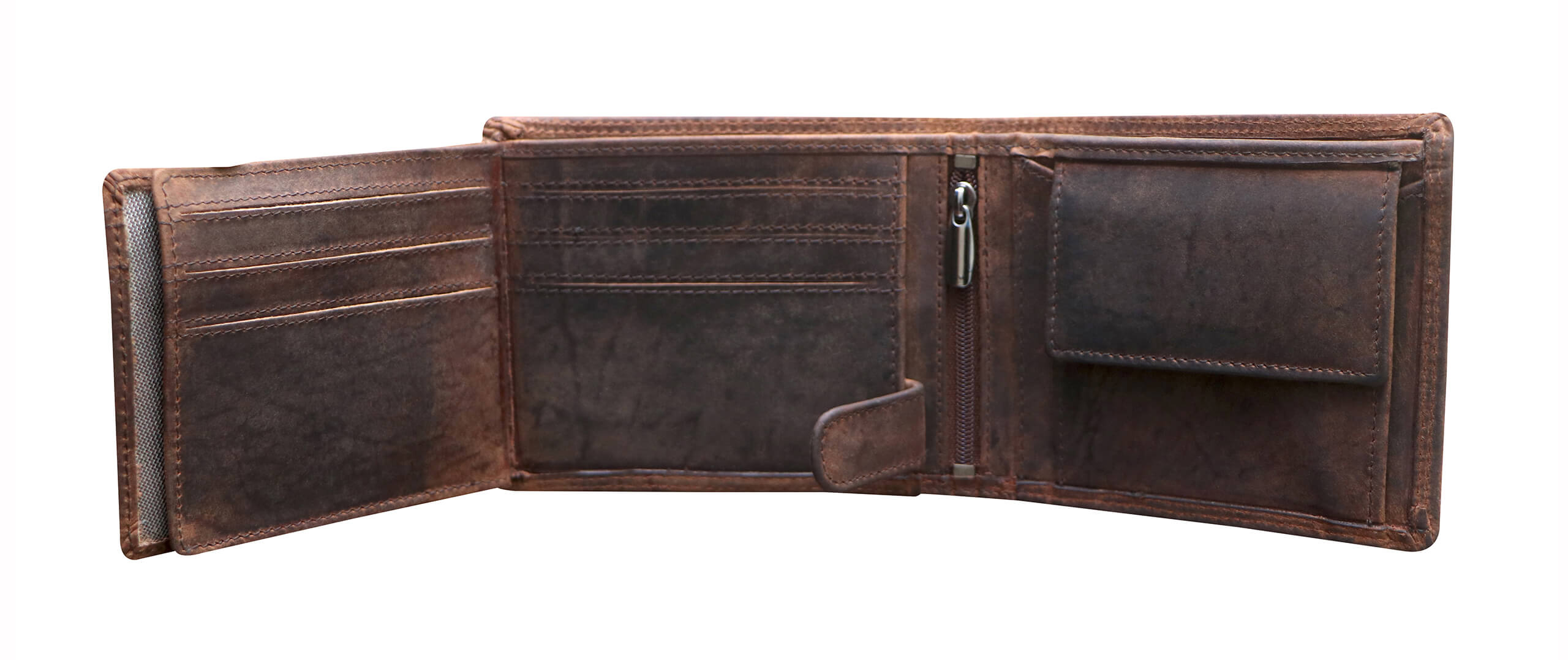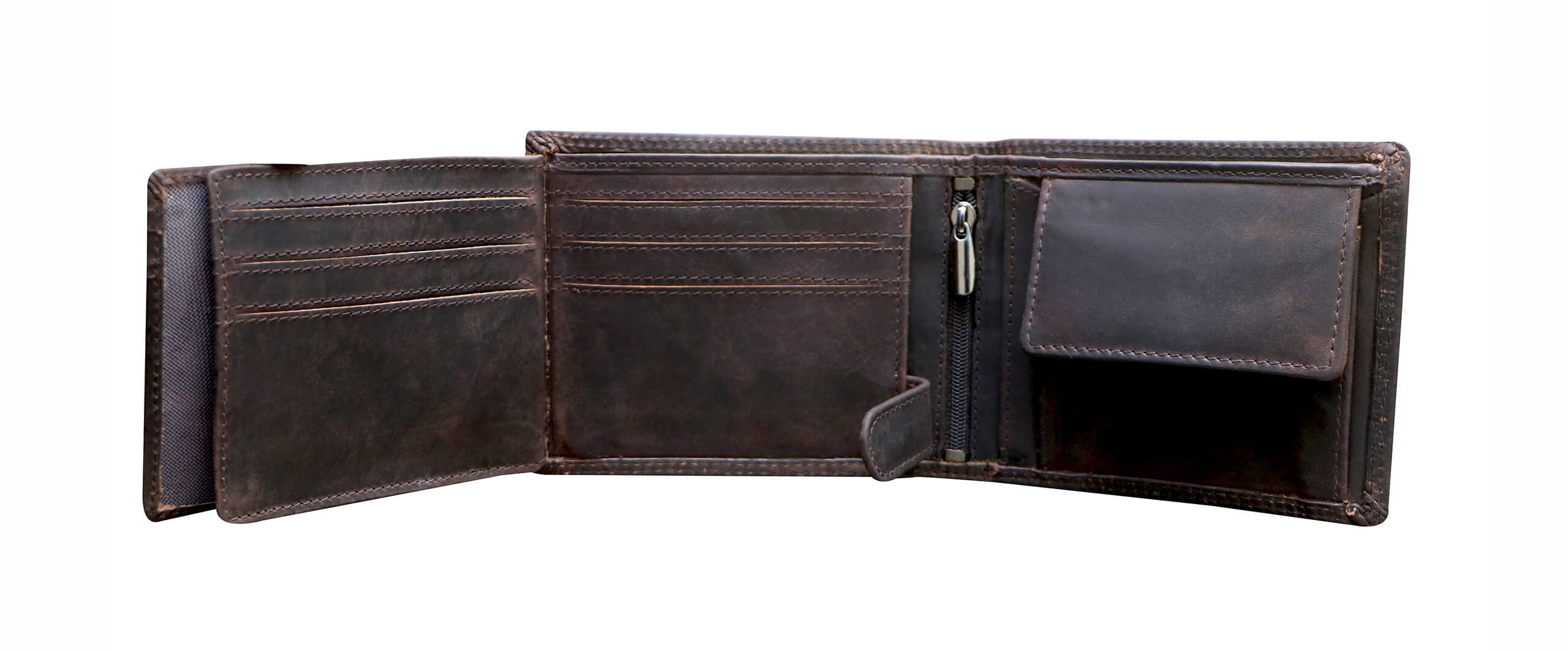 - 2 x bill compartments open (fits up to €500 bills perfectly).