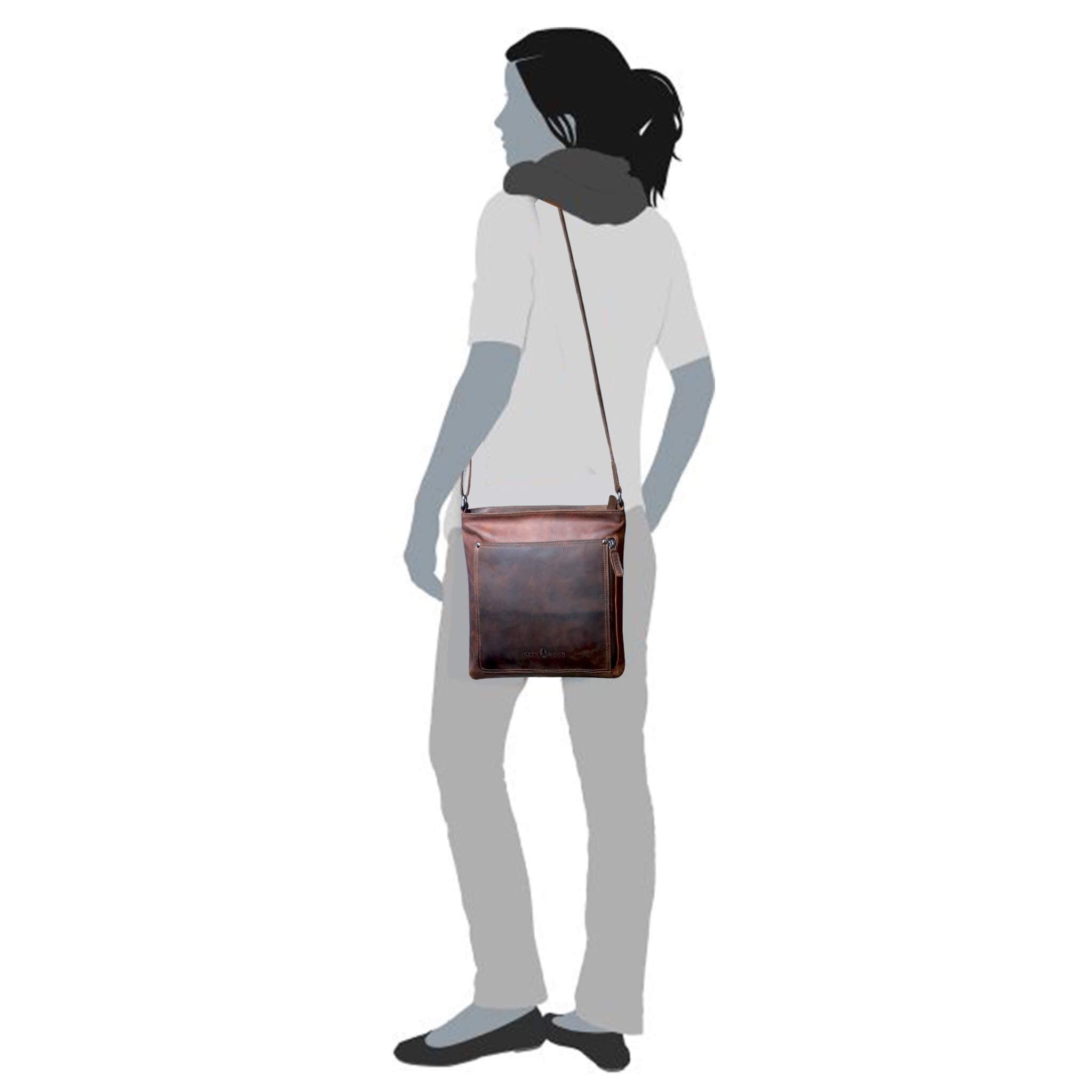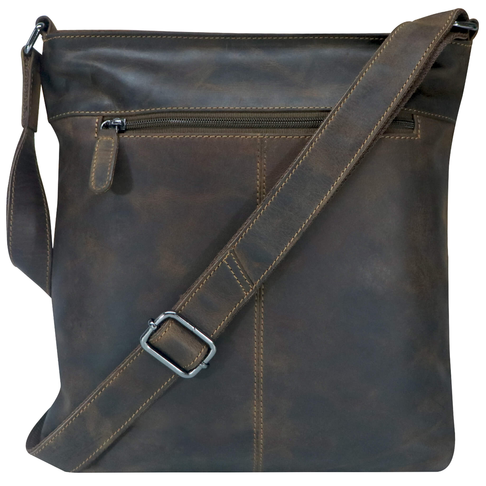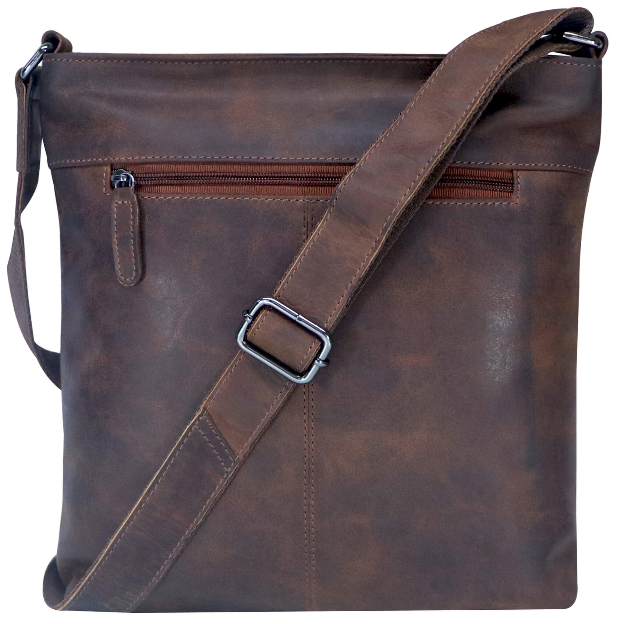 With the Greenwood "Bree" retro shoulder bag, you can carry your iPad or tablet comfortably and stylishly. This premium leather accessory features a spacious zipped main compartment, a zipped back pocket, a zipped side pocket in the front, and an open front pocket. It is also equipped with a wide (3 cm), adjustable shoulder strap for the best comfort and additional robustness thanks to the nylon padding. With this modern and vintage-looking bag you always have the most important things at hand!