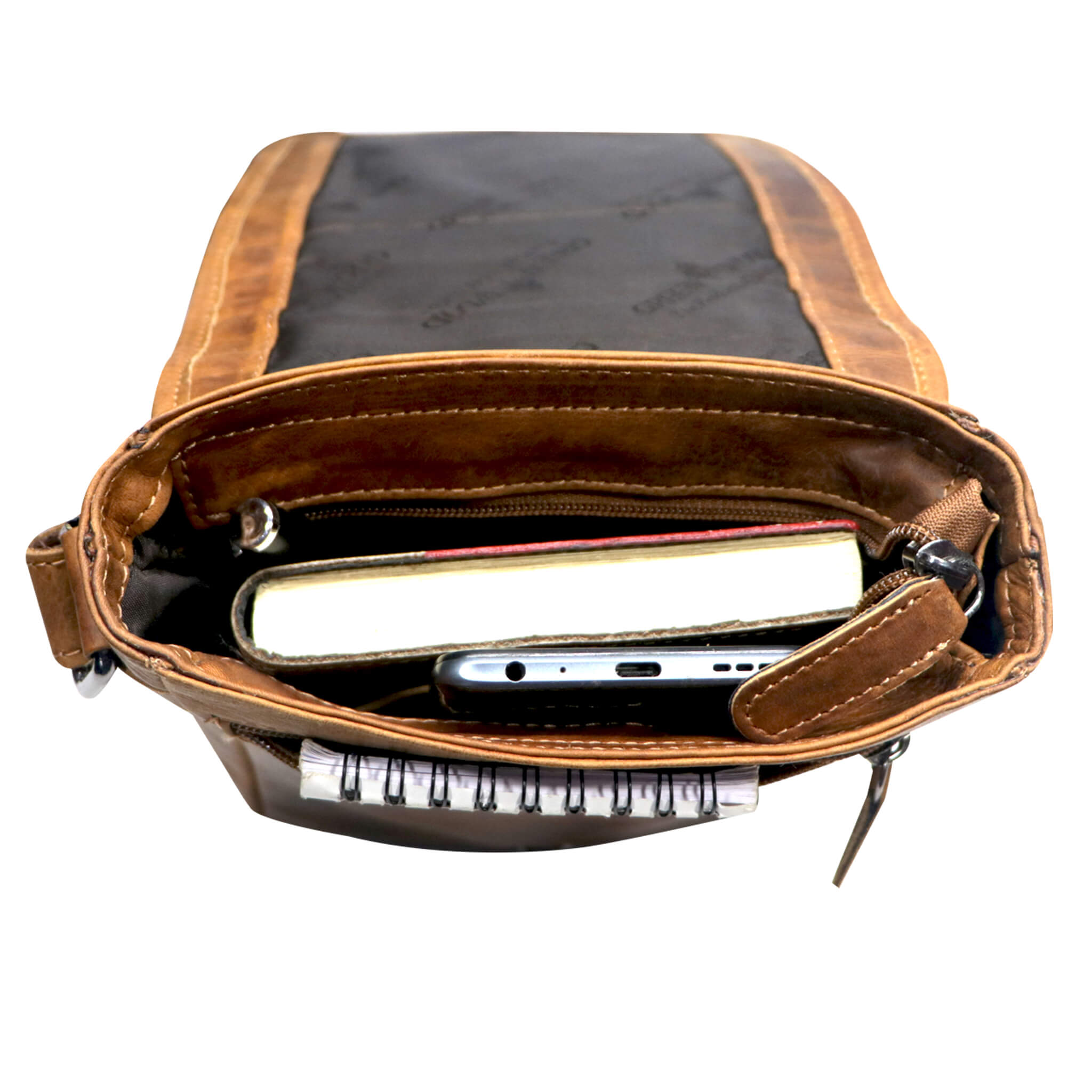 The light and small shoulder bag from Greenwood "Louis" is the perfect size for everyday use for men and women. It convinces with two main compartments that can be closed with a zipper and a front and a back compartment with a zipper for small things that you want to have close at hand. Cell phone, wallet or keys - everything has its place.
