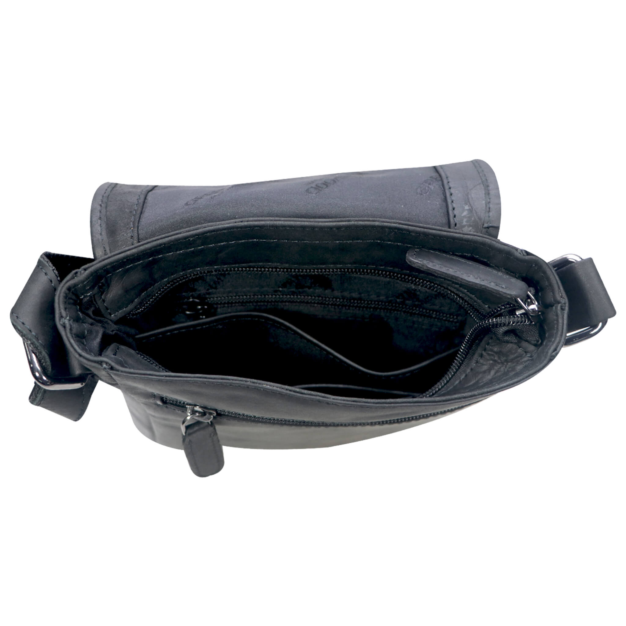• Adjustable shoulder strap (up to 150 cm) made of leather and lined with robust nylon for maximum comfort.