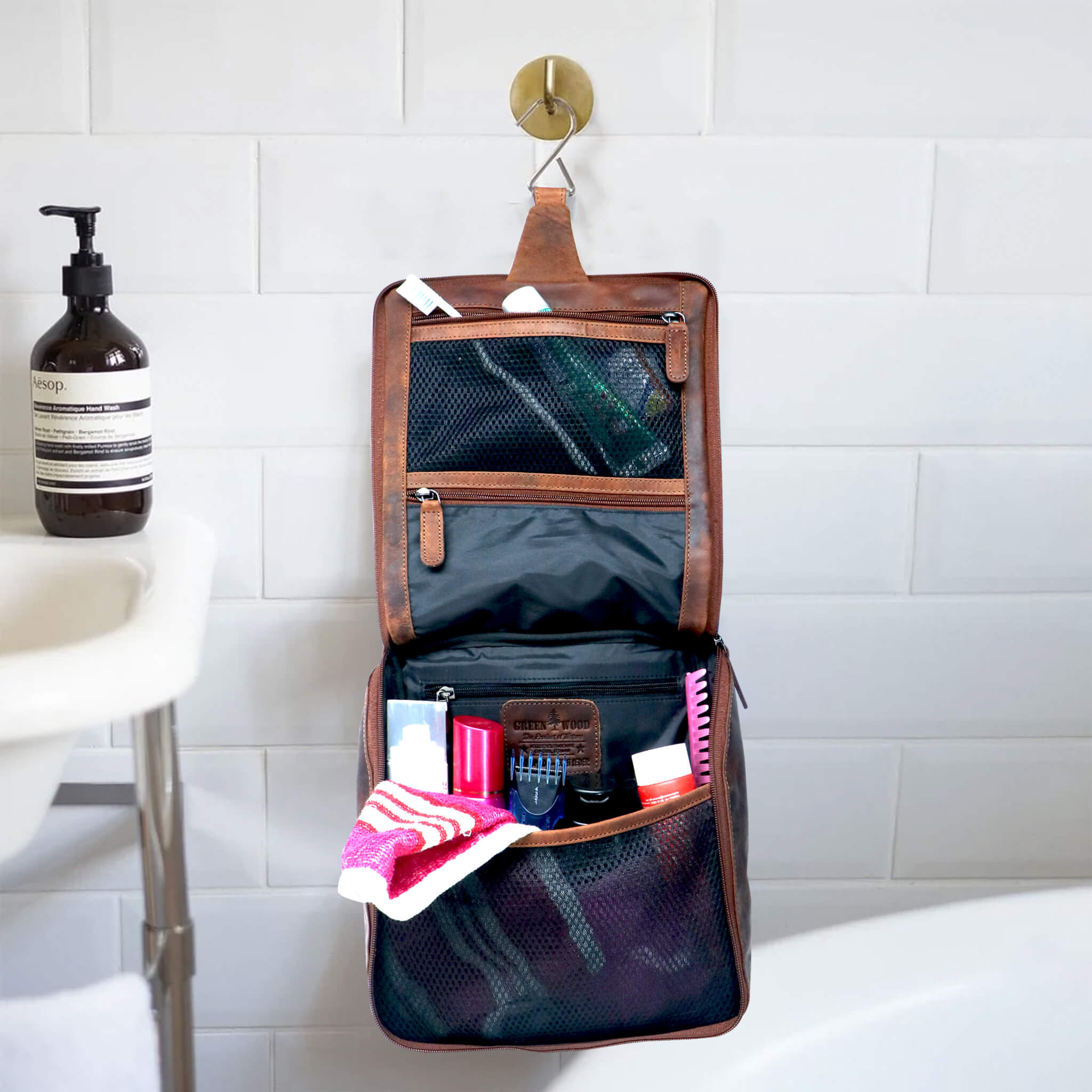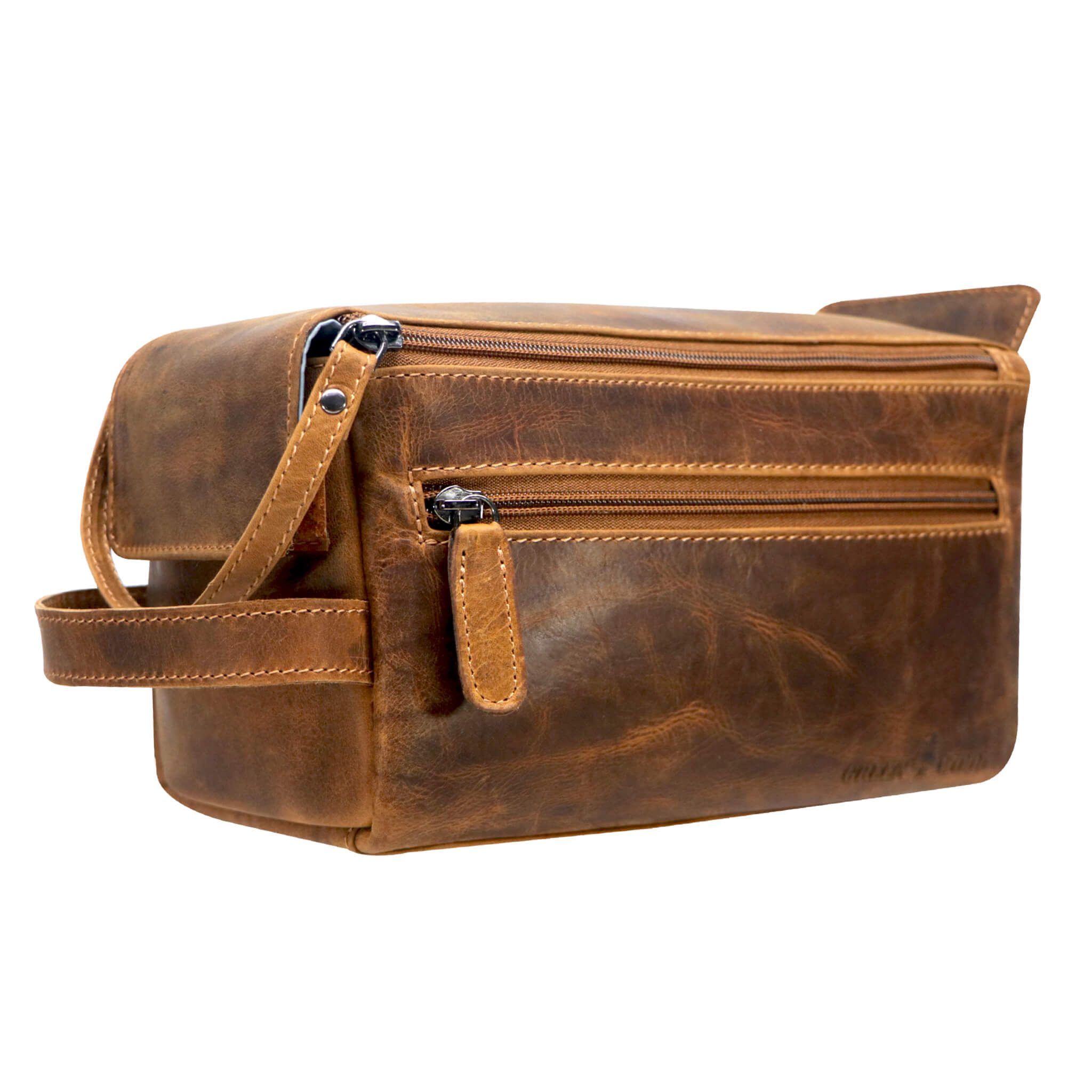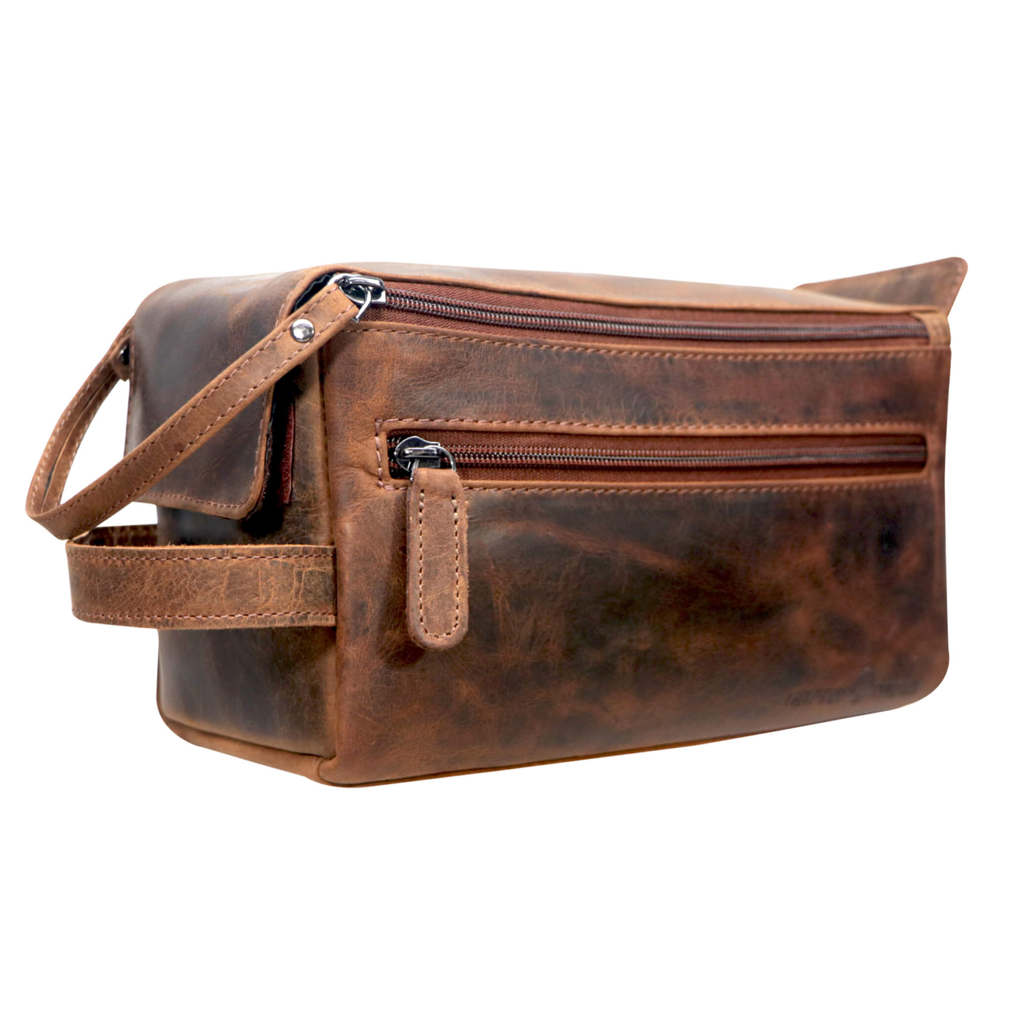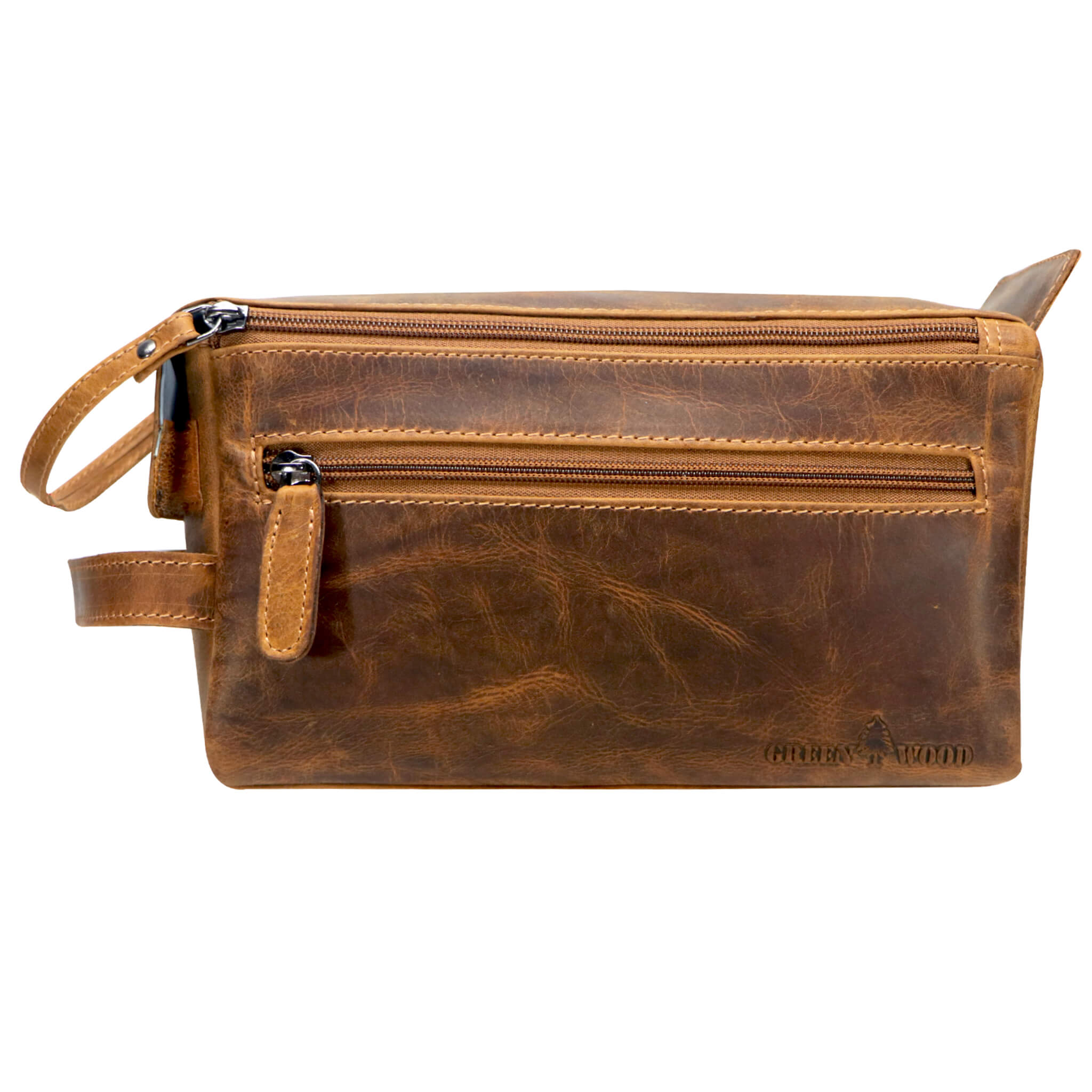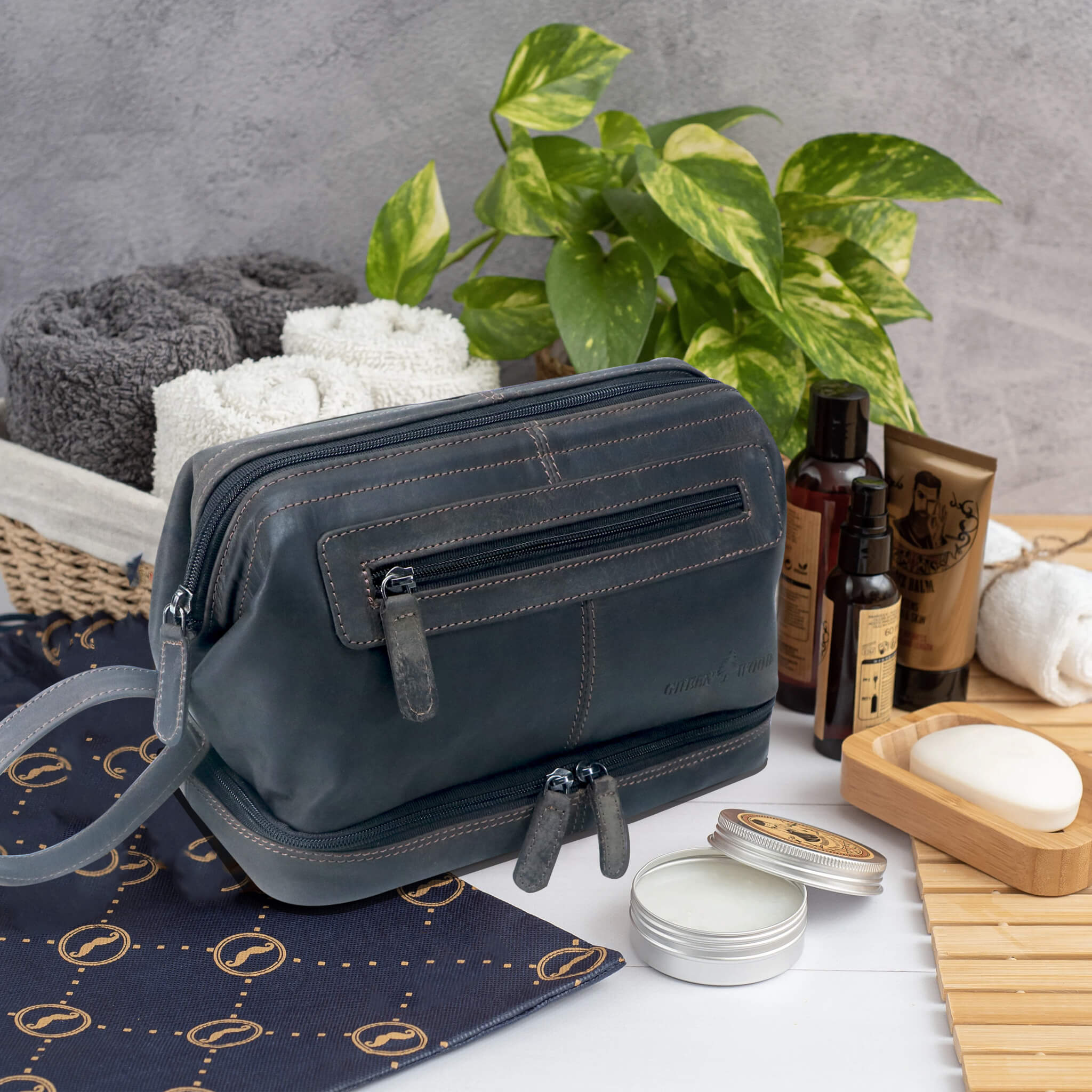 The Greenwood collection of unisex leather toiletry and cosmetic bags is the perfect way to keep your personal toiletries organized and safe when travelling. These stylish and functional bags are made of high quality leather that is durable and comfortable to the touch. The spacious main compartments are zipped to keep your belongings secure and there are multiple interior compartments and pockets to hold all your items from your toothbrush and makeup to your shaving kit. The Hans cosmetic bag is more structured and can be opened like a doctor's bag, making it perfect for when you need to store a lot of items in one place. The Gijon toiletry bag is ideal if you only want to take a few essential items with you on a trip or a short business trip. Each bag in the Greenwood collection is perfectly handcrafted and effortlessly chic, with a beautifully vintage look and a timeless design that suits both men and women. The rich vintage colors of the leather are perfect for adding a touch of luxury to your bathroom or dressing room. And because they're made from natural materials, you can be sure they're eco-friendly too. So if you are looking for high quality, stylish and sustainable leather toiletry bags and cosmetic bags for men and women, the Greenwood collection is the perfect choice. Alternatively, these bags also make perfect gifts for friends or family, especially if you're unsure what to get them. Order your Greenwood bag today and see how convenient and stylish travel can be!