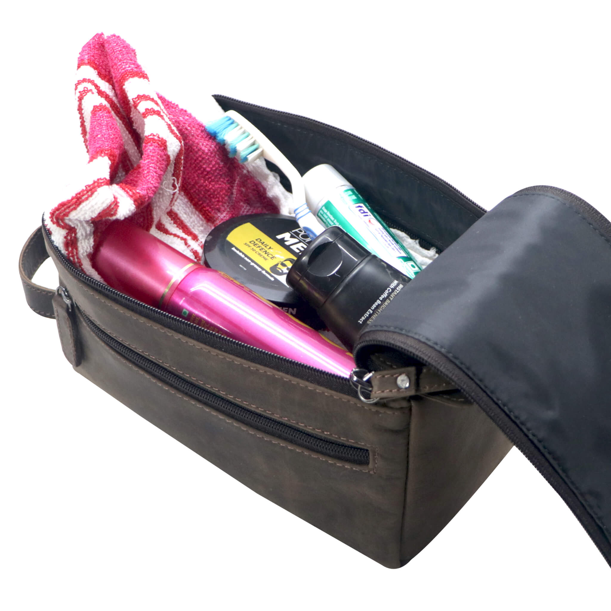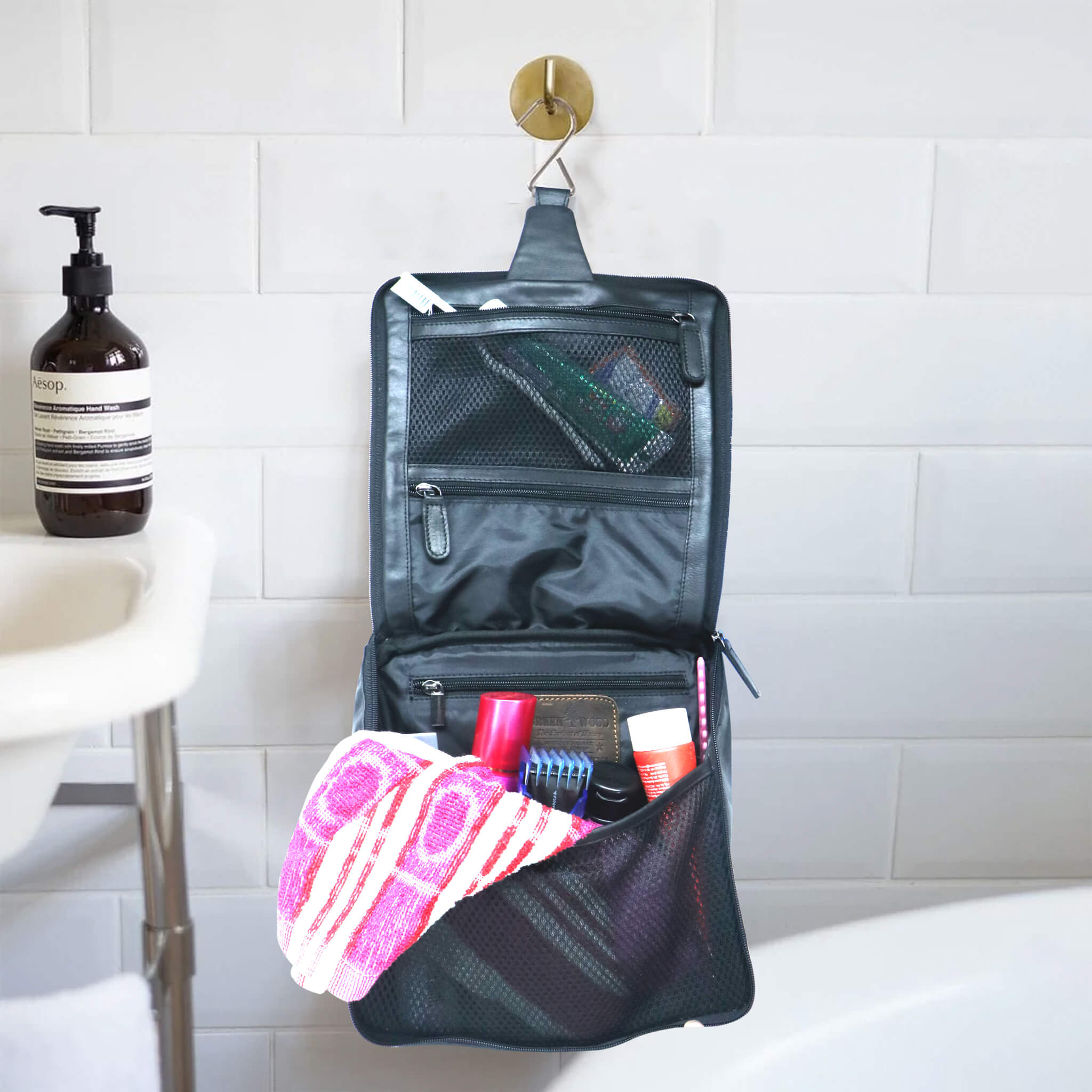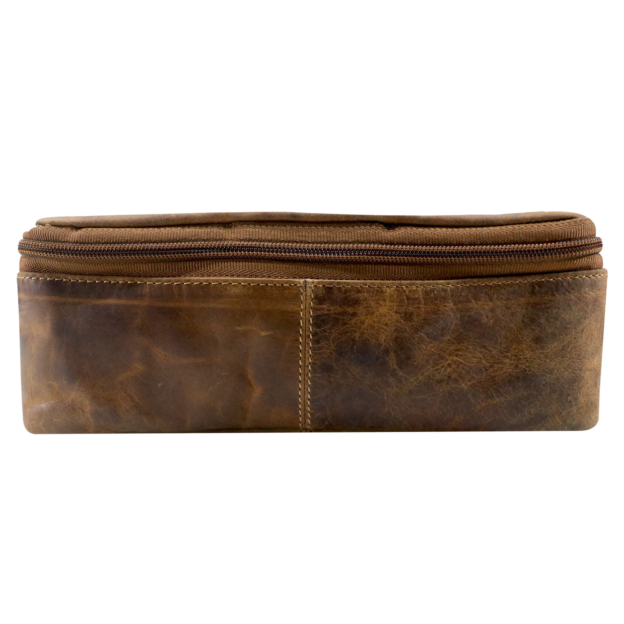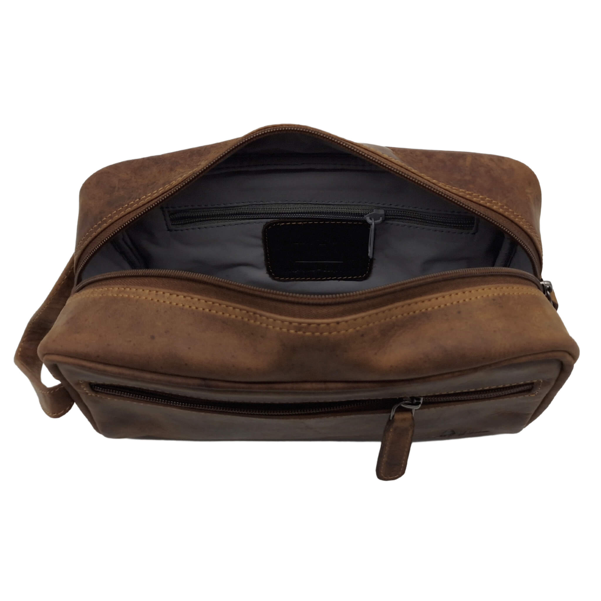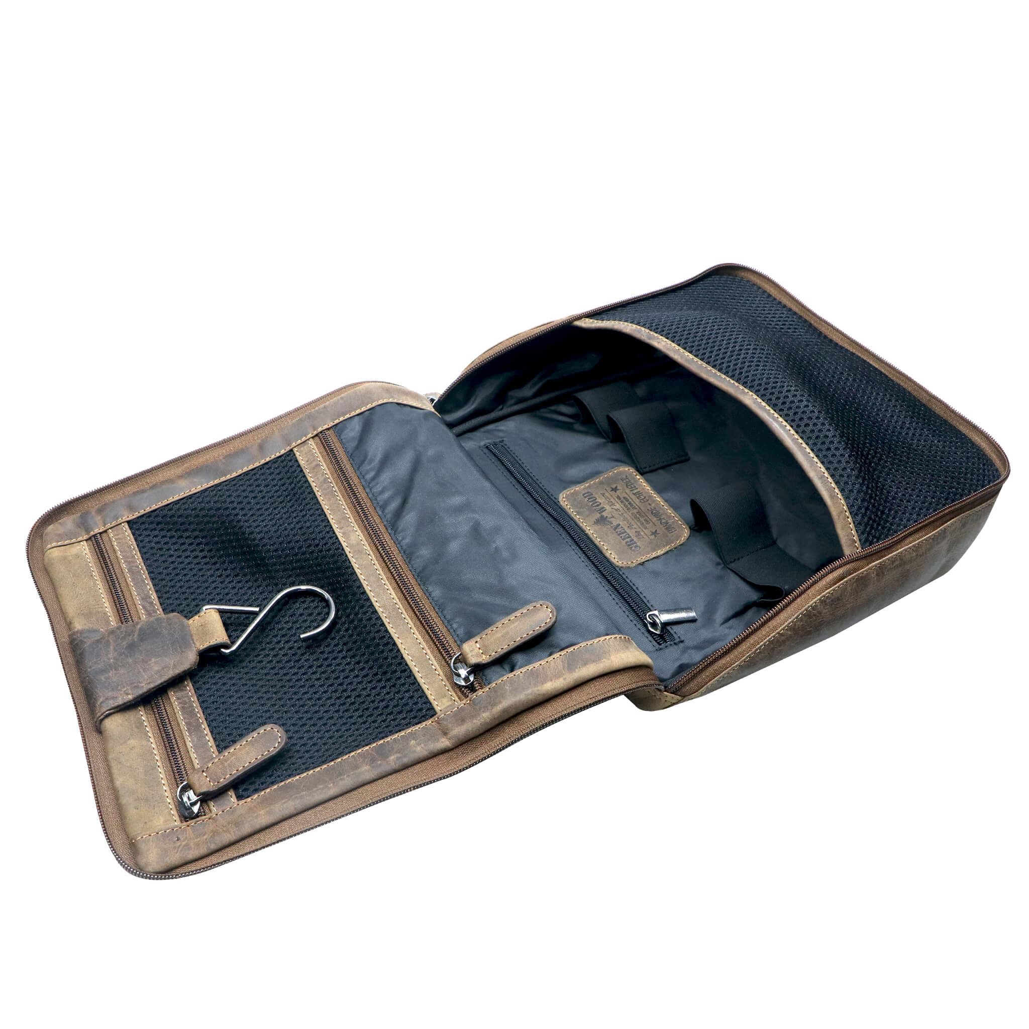 The Greenwood collection of unisex leather toiletry and cosmetic bags is the perfect way to keep your personal toiletries organized and safe when travelling. These stylish and functional bags are made of high quality leather that is durable and comfortable to the touch. The spacious main compartments are zipped to keep your belongings secure and there are multiple interior compartments and pockets to hold all your items from your toothbrush and makeup to your shaving kit. The Hans cosmetic bag is more structured and can be opened like a doctor's bag, making it perfect for when you need to store a lot of items in one place. The Gijon toiletry bag is ideal if you only want to take a few essential items with you on a trip or a short business trip. Each bag in the Greenwood collection is perfectly handcrafted and effortlessly chic, with a beautifully vintage look and a timeless design that suits both men and women. The rich vintage colors of the leather are perfect for adding a touch of luxury to your bathroom or dressing room. And because they're made from natural materials, you can be sure they're eco-friendly too. So if you are looking for high quality, stylish and sustainable leather toiletry bags and cosmetic bags for men and women, the Greenwood collection is the perfect choice. Alternatively, these bags also make perfect gifts for friends or family, especially if you're unsure what to get them. Order your Greenwood bag today and see how convenient and stylish travel can be!