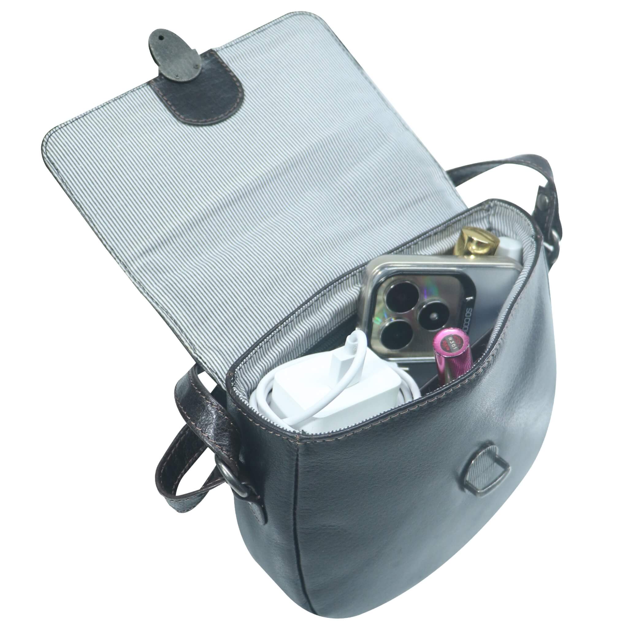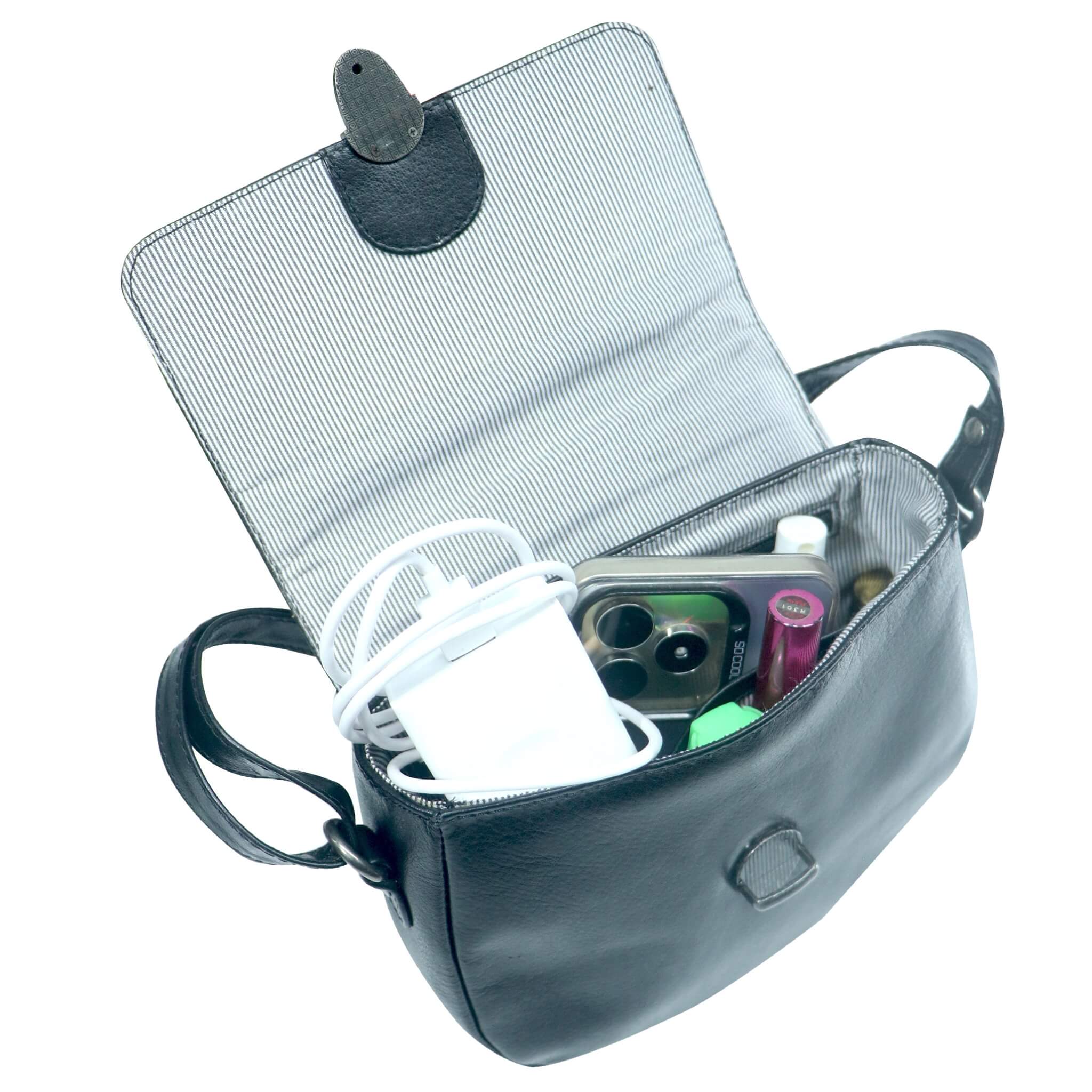 Greenwood Frida - Black Leather Bag for Women, Small Crossbody Handbag.