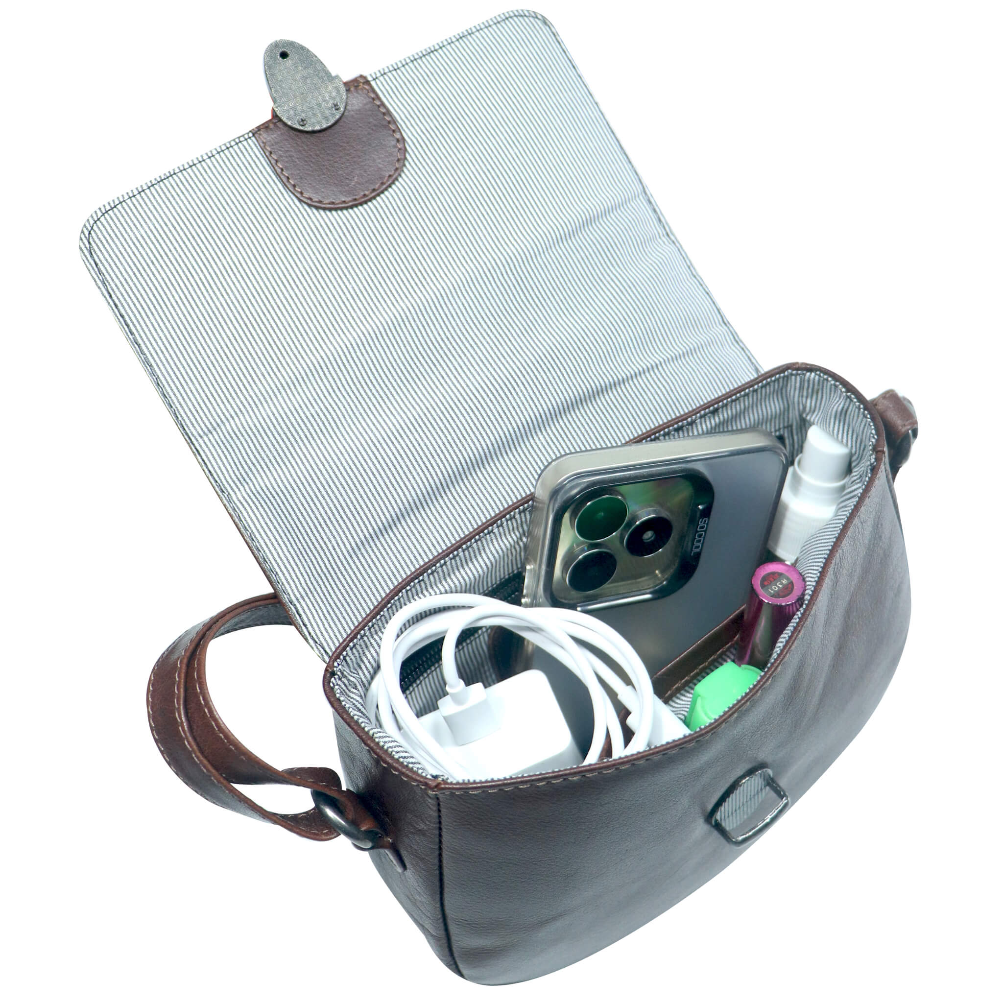 The Frida Small Crossbody Handbag made from high-quality buffalo leather combines timeless design with practical functionality. Thanks to its modern and minimalist design, it is the ideal companion for on the go. The bag features a zippered main compartment with an additional slip pocket inside, as well as an additional zippered pocket on the back for quick access to important small items. The secure snap closure reliably protects your belongings. With an adjustable leather shoulder strap, the bag offers flexible carrying comfort. Despite its robust construction, it is pleasantly lightweight, making it perfect for everyday use. The Frida women's crossbody bag combines practicality and elegant style in a compact format.