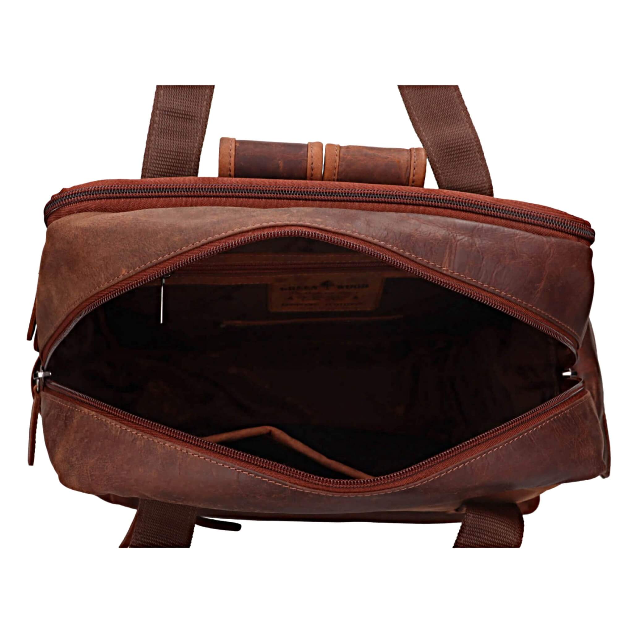 - Embossed Greenwood logo on the outside, sewn-on label in the main compartment, color-coordinated seams and lining, and smooth-running zippers.