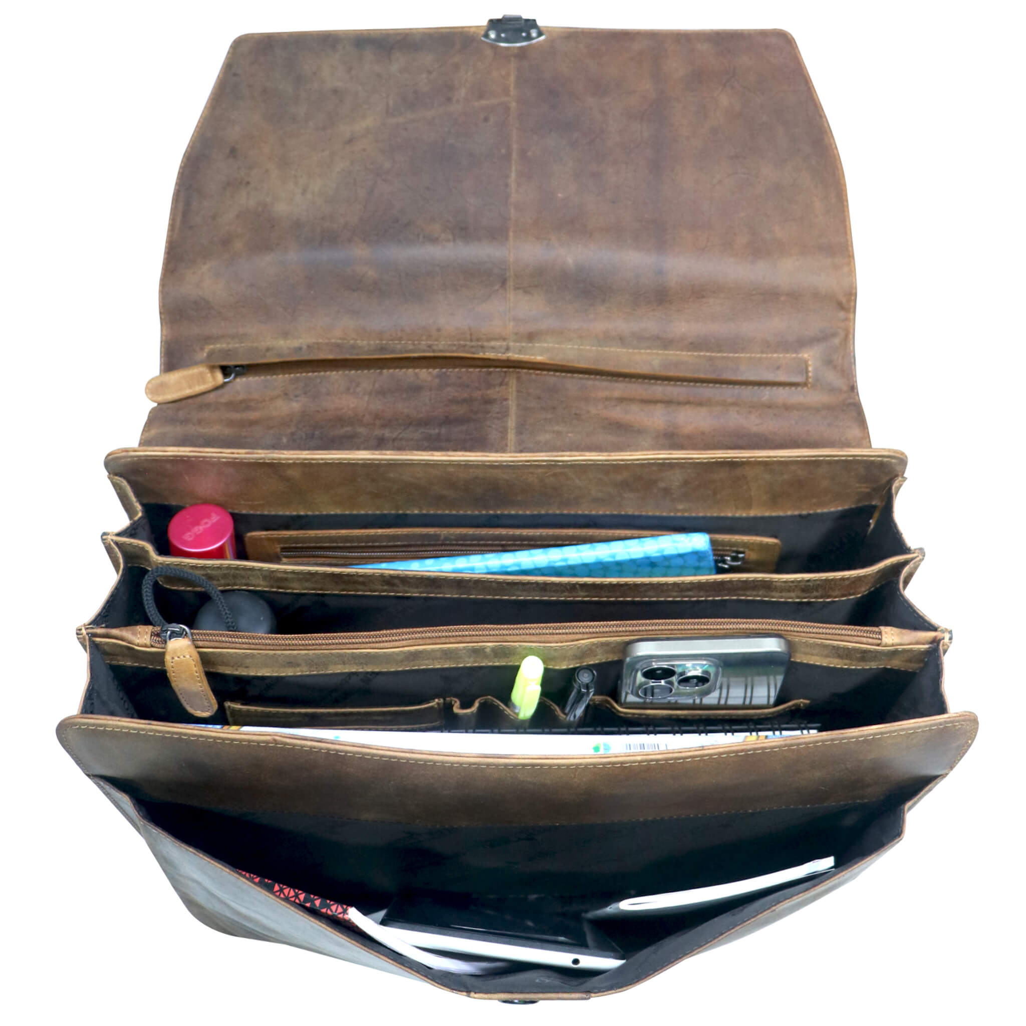 Hagen Leather Briefcase Men Classic Work Bag Women Large