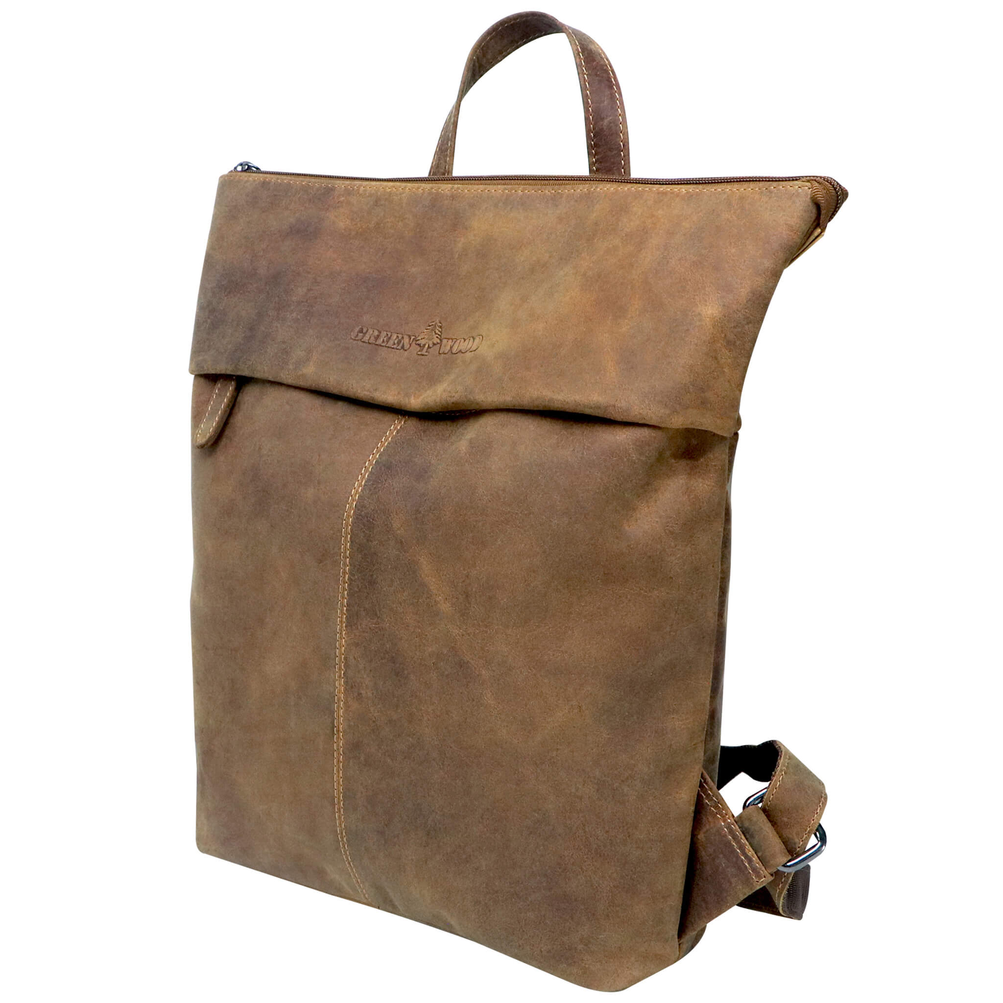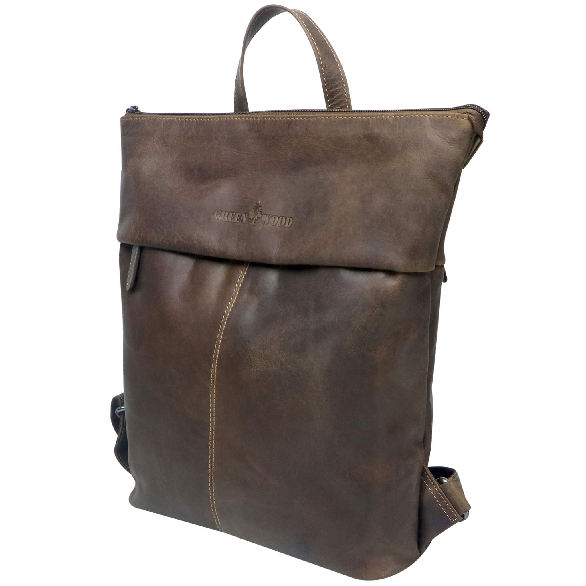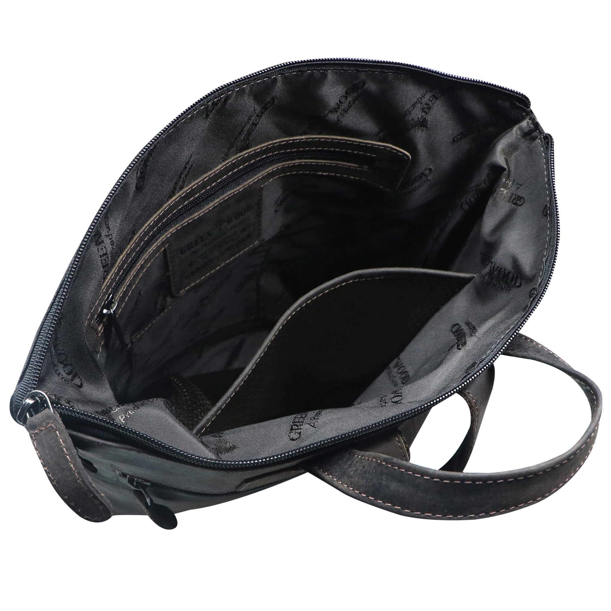 - Embossed Greenwood logo on the outside, label sewn on in the main compartment, smooth-running zips, color-coordinated decorative seams and inner lining.
