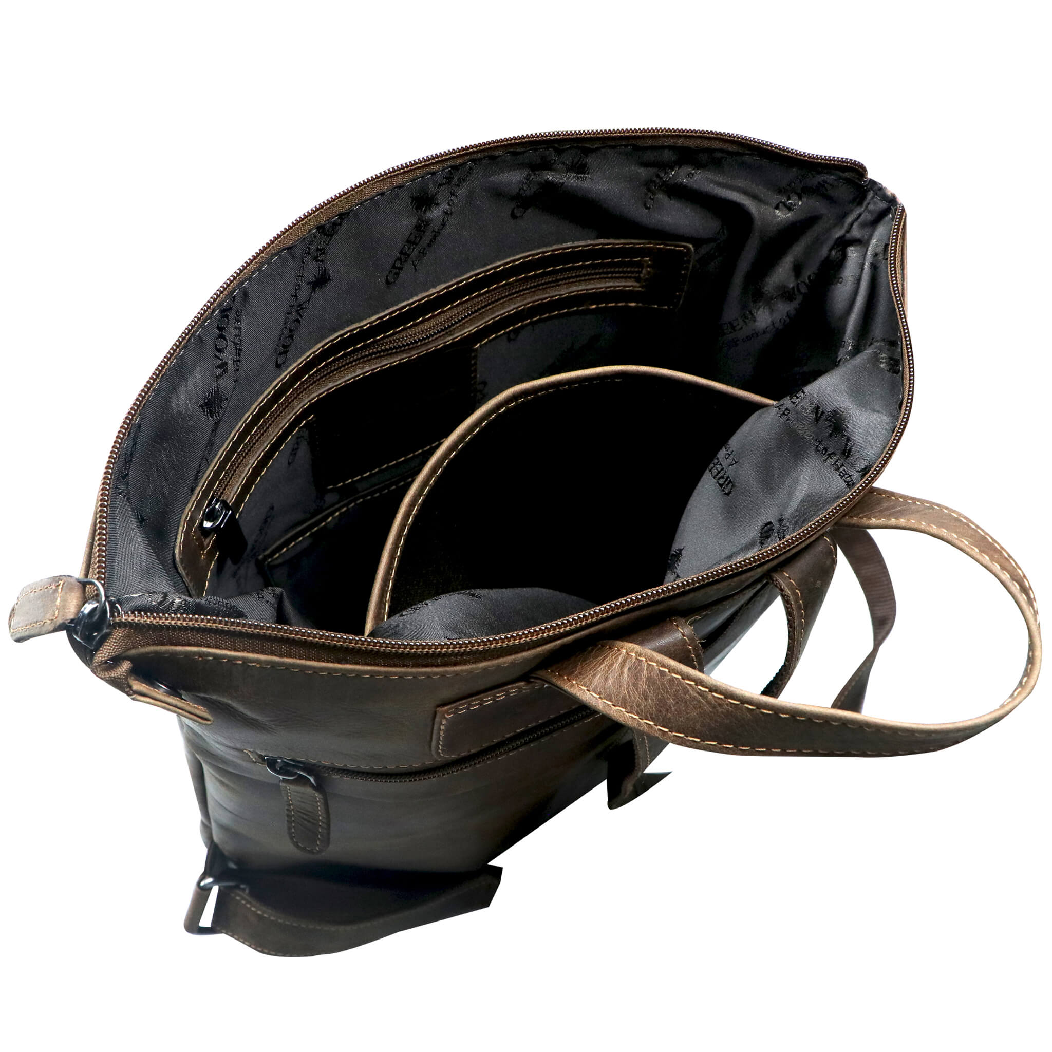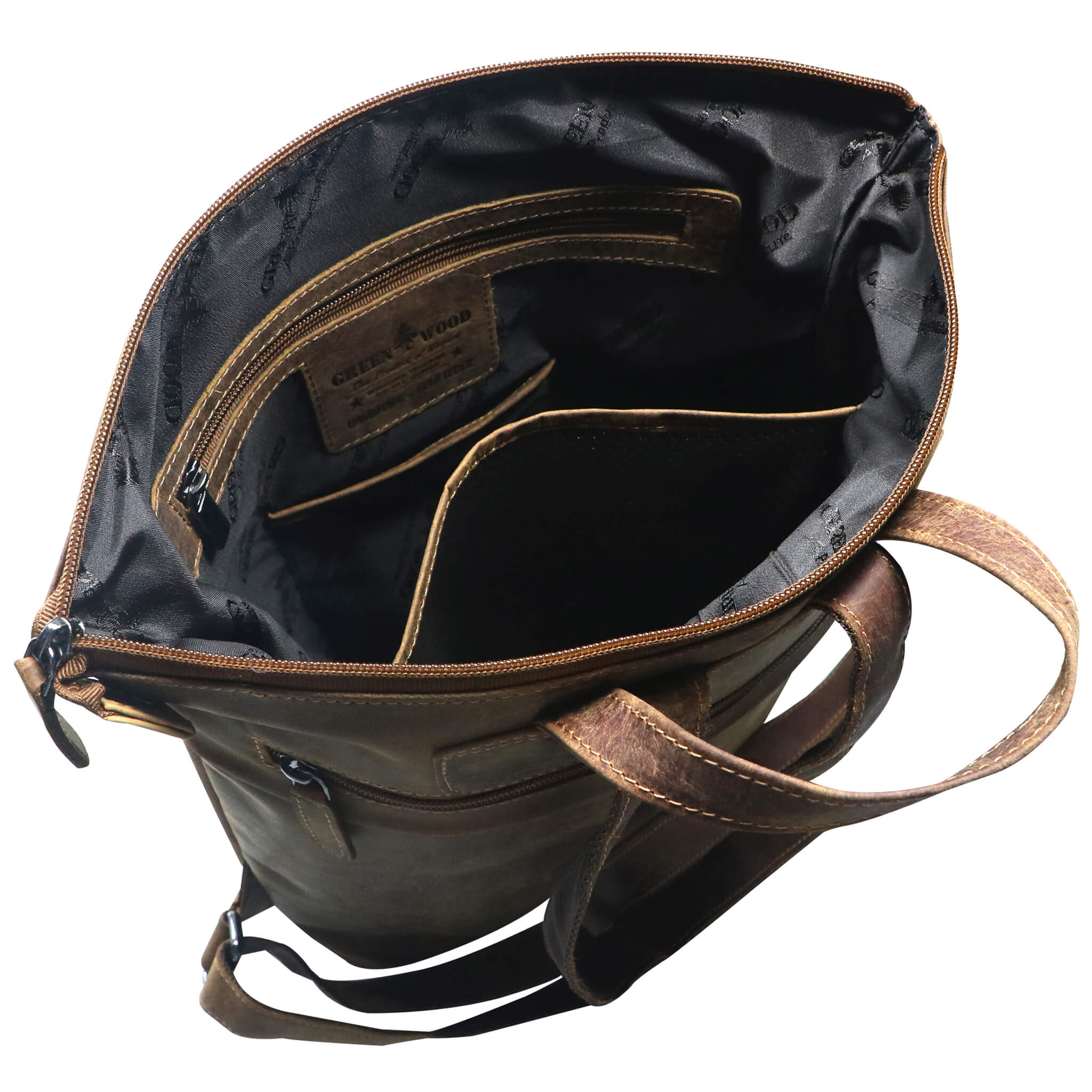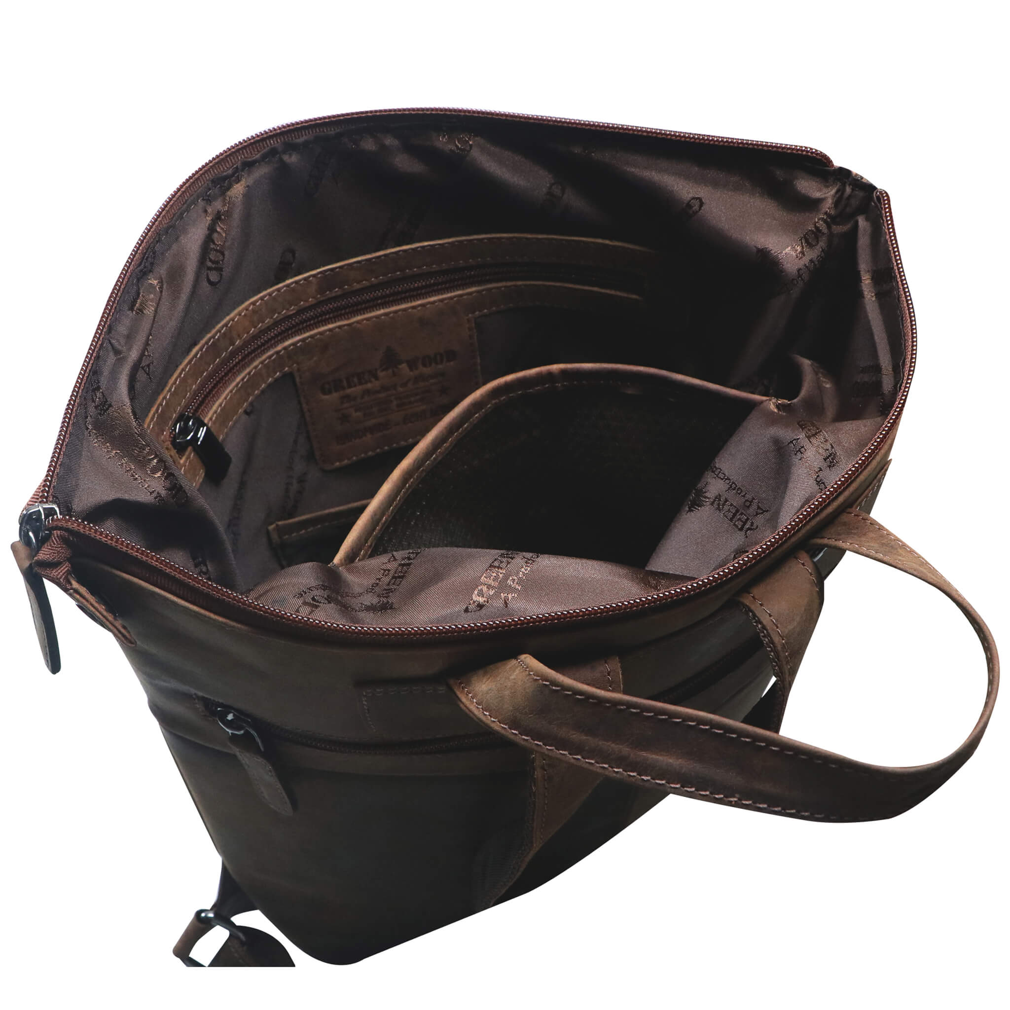 - Embossed Greenwood logo on the outside, label sewn on in the main compartment, smooth-running zips, color-coordinated decorative seams and inner lining.