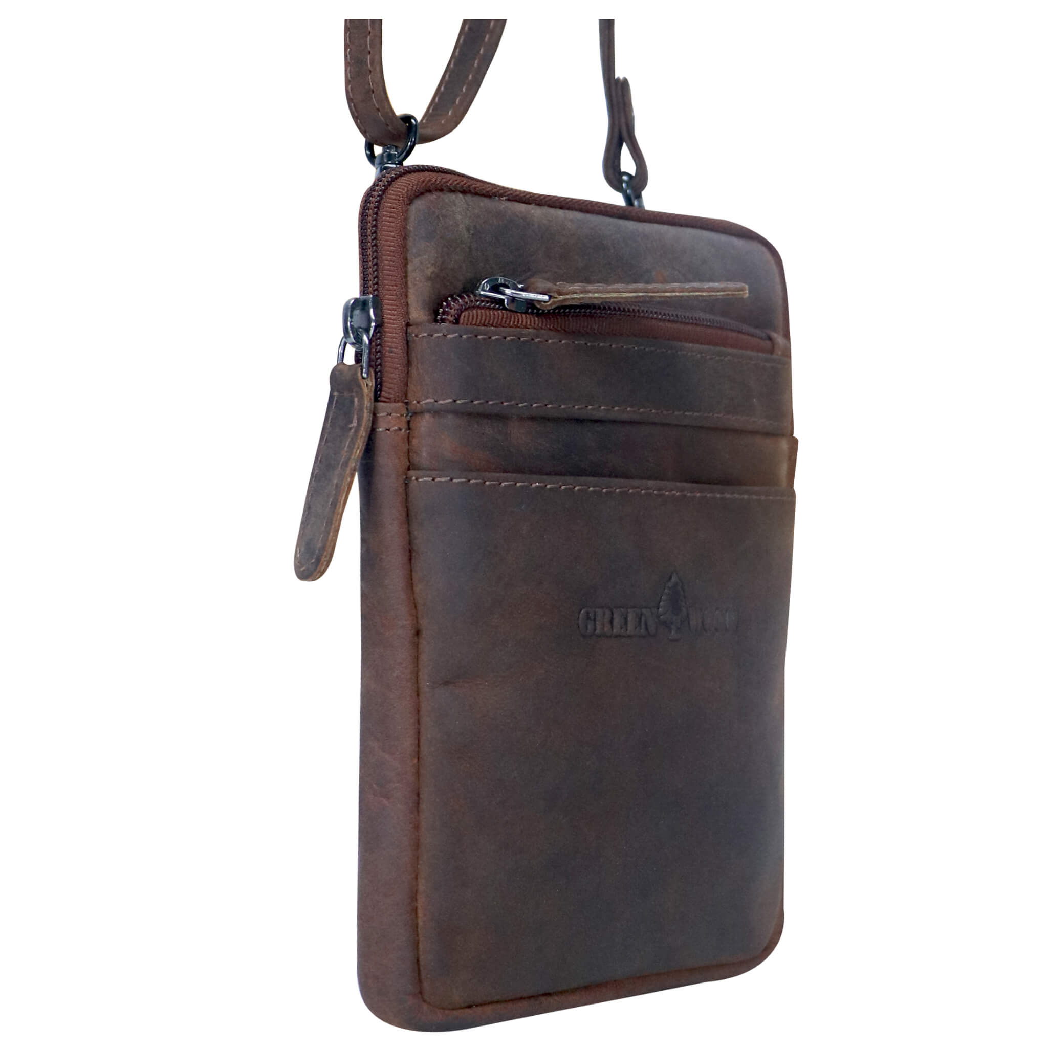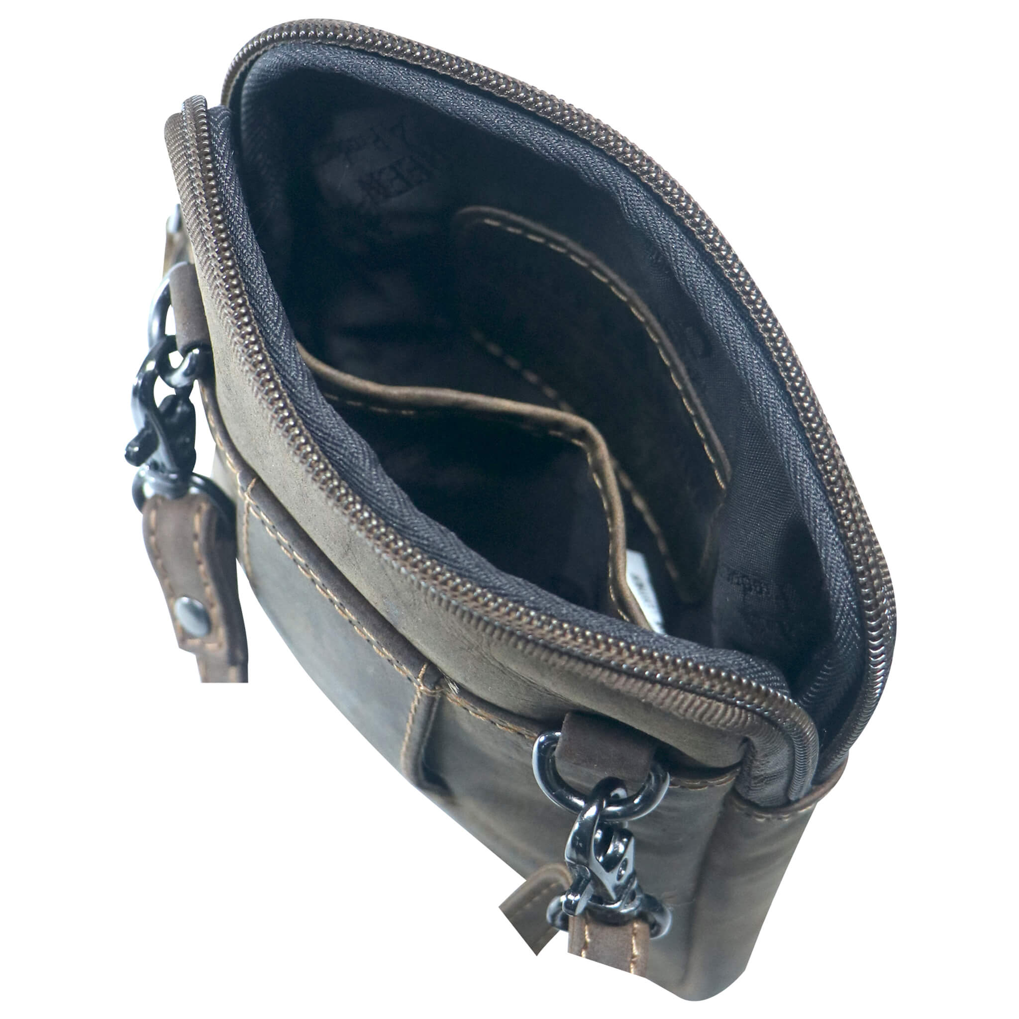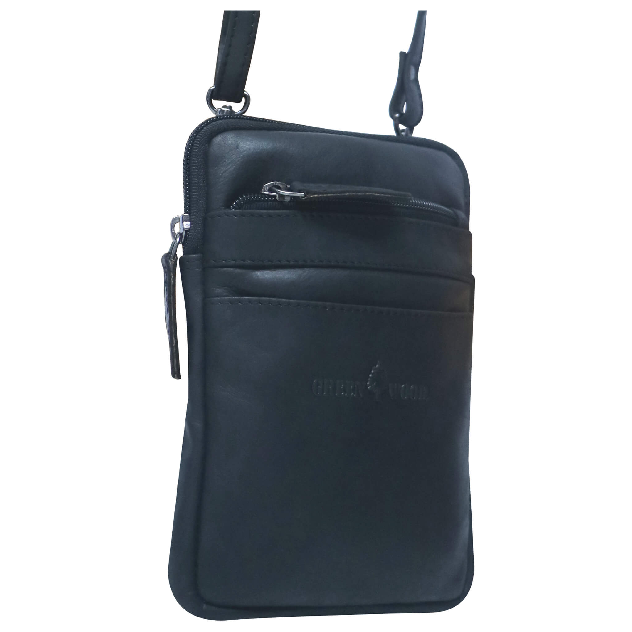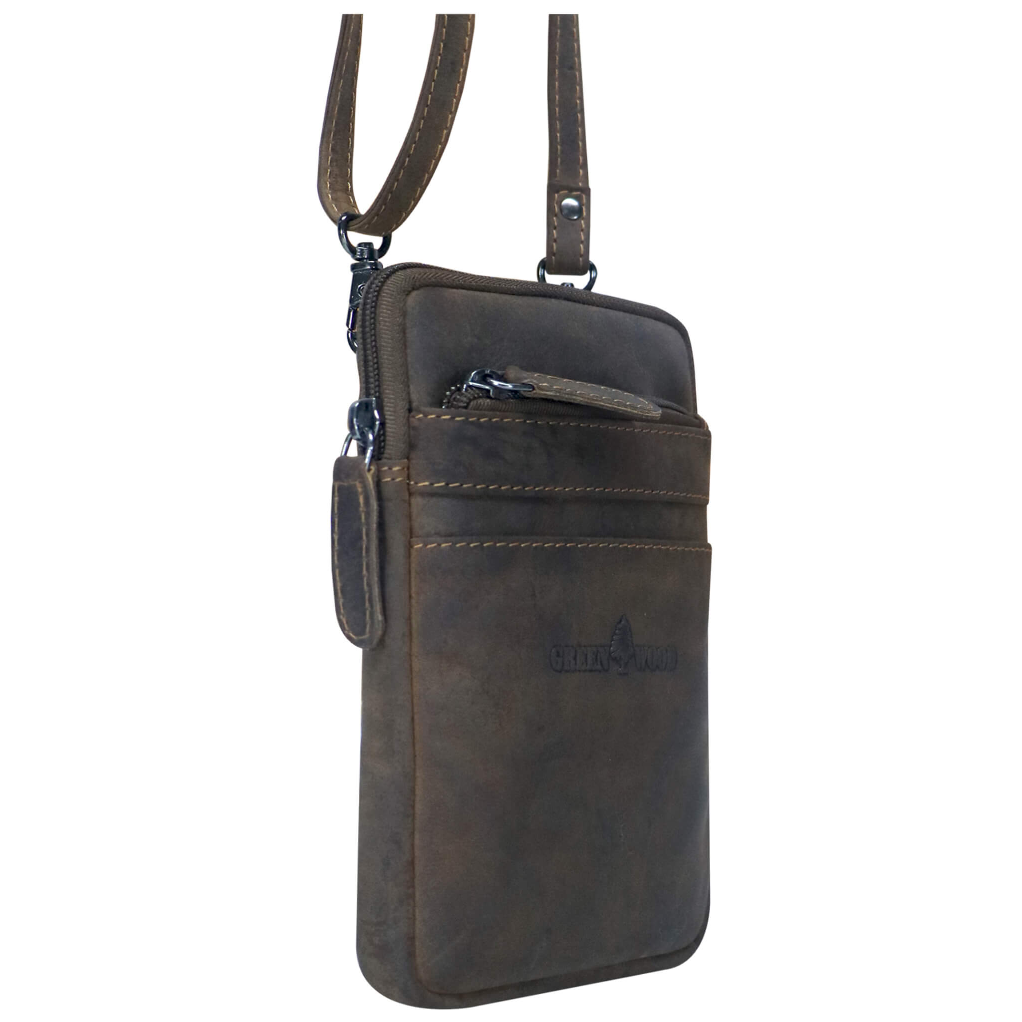 Carry your phone in style and comfort with the 'Greenwood Jad' phone bag for belts. Made from genuine leather, the bag is unique in design and function. With a main compartment that encloses the latest smartphone, plus a front zippered pocket and an open pocket for quick access to small items, you'll have access to all the things you need on the go. This multifunctional bag is also equipped with a belt loop on the back and a removable and adjustable shoulder strap made of full leather - perfect for on the go!