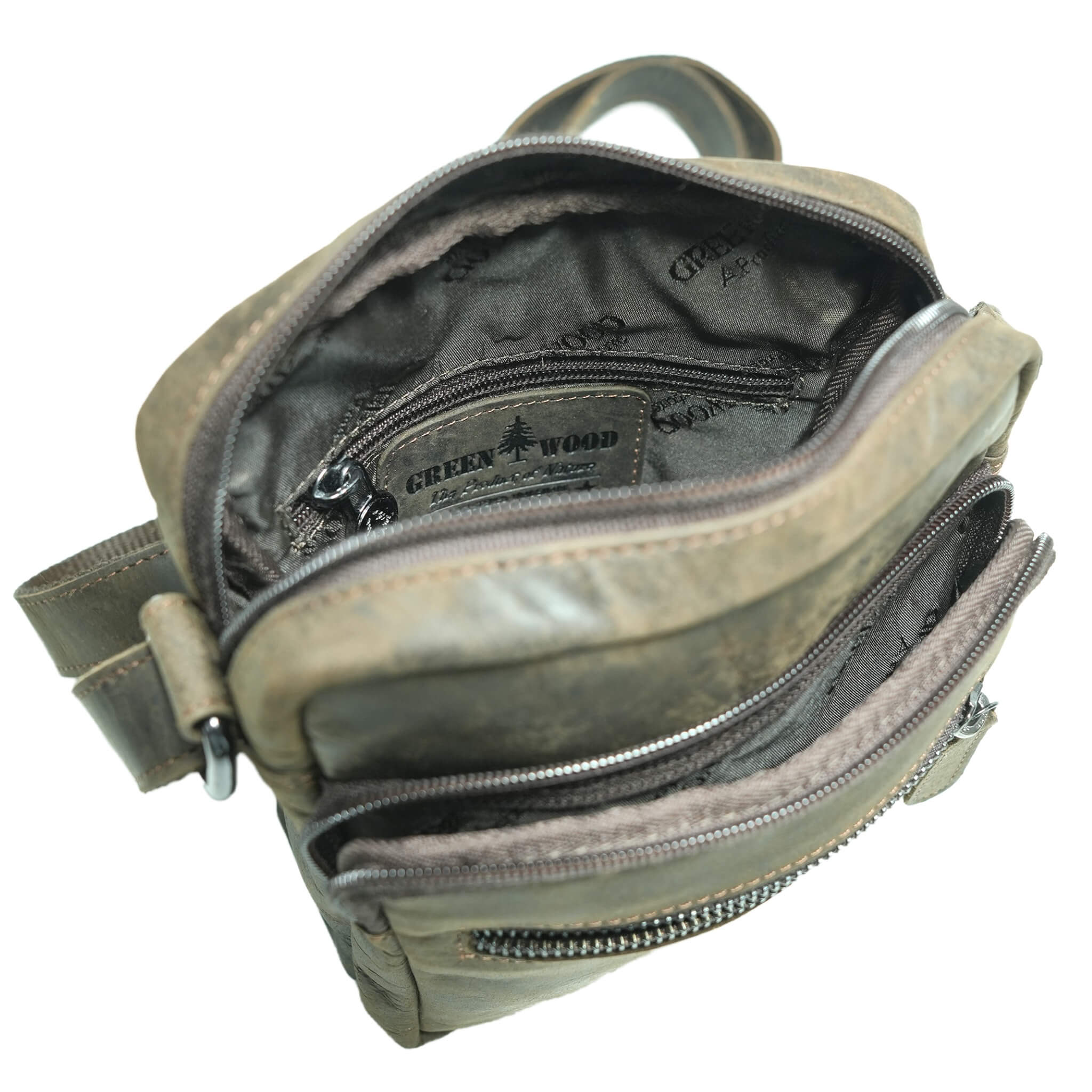 - Embossed Greenwood logo on the outside, sewn-on label inside the main compartment, color-coordinated stitching and lining, and smooth-running zippers.
