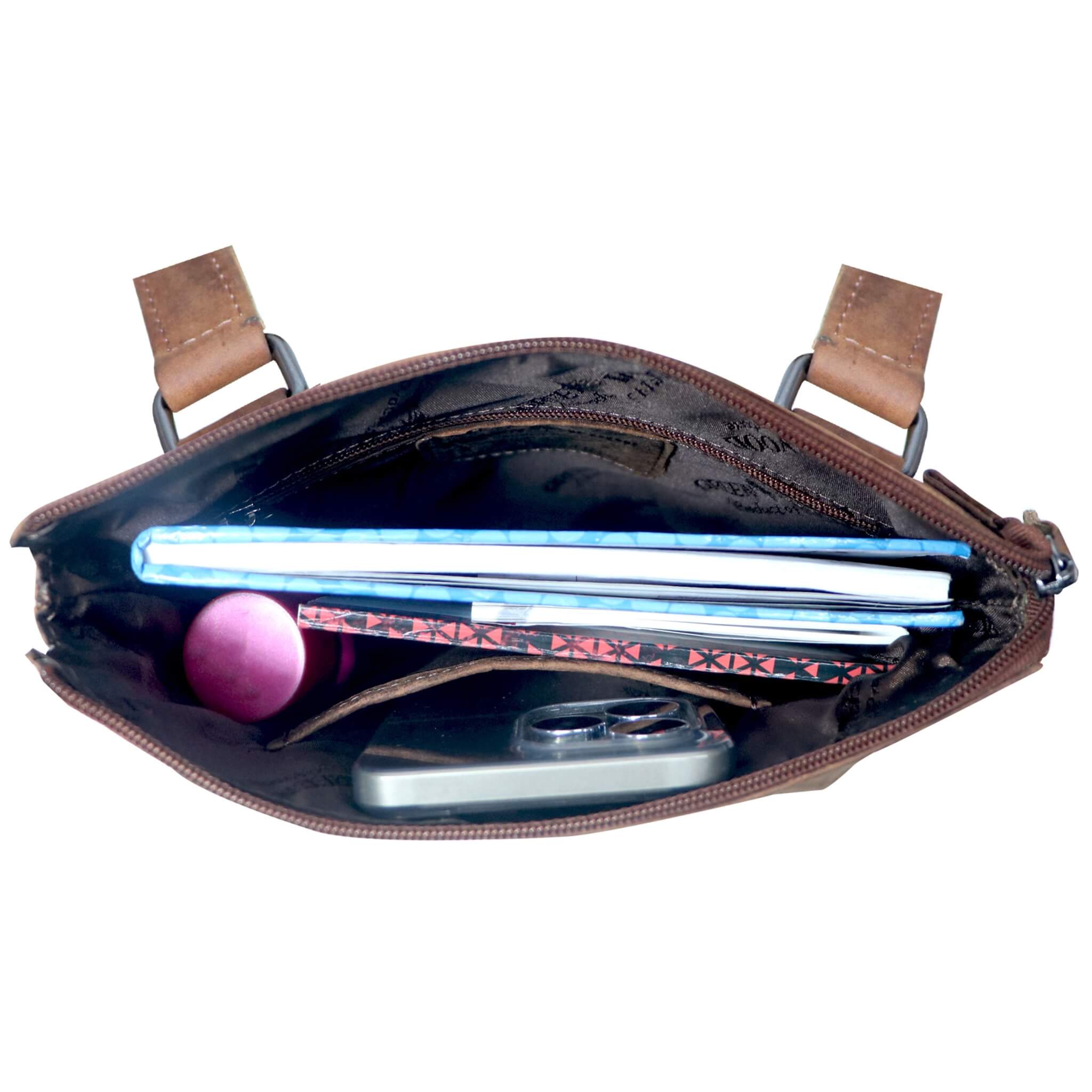 - Wide (3 cm) adjustable shoulder strap (up to 150 cm) made of leather (lined with robust nylon for maximum comfort).