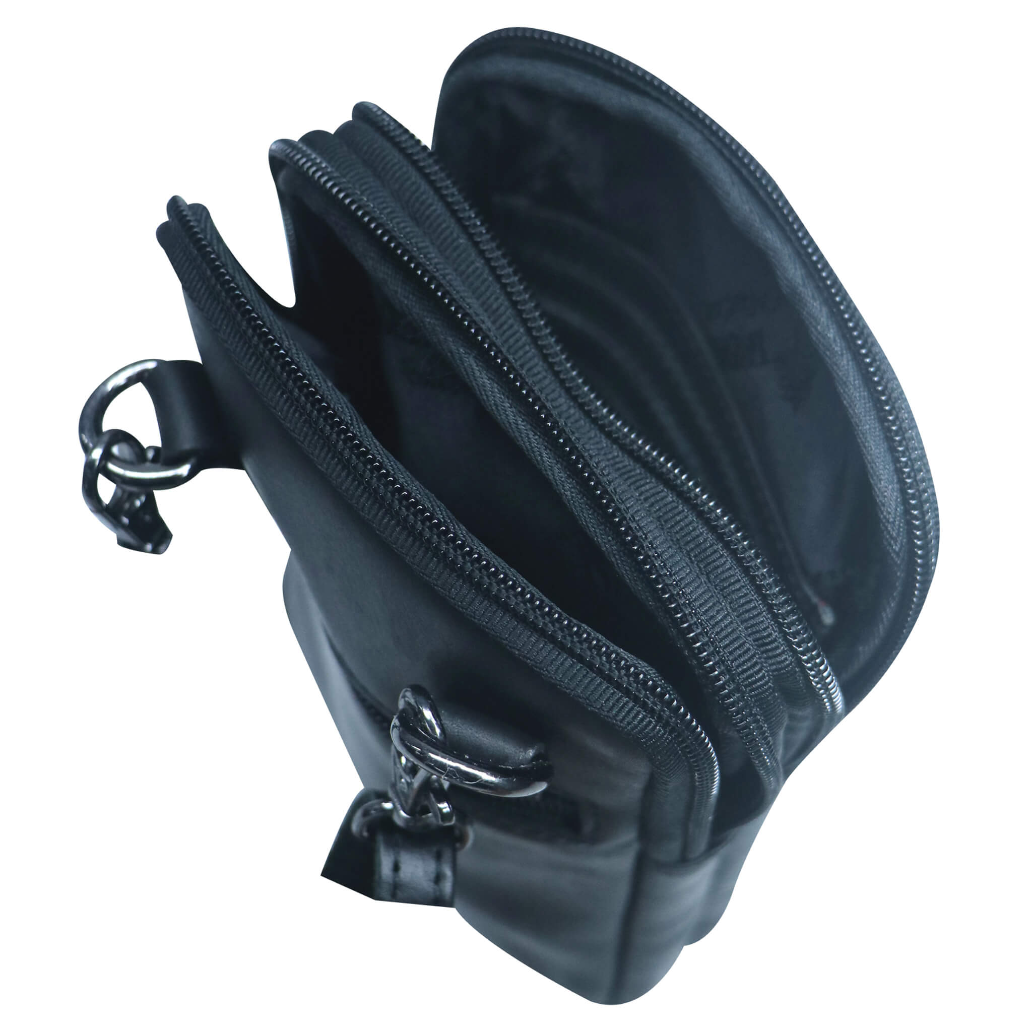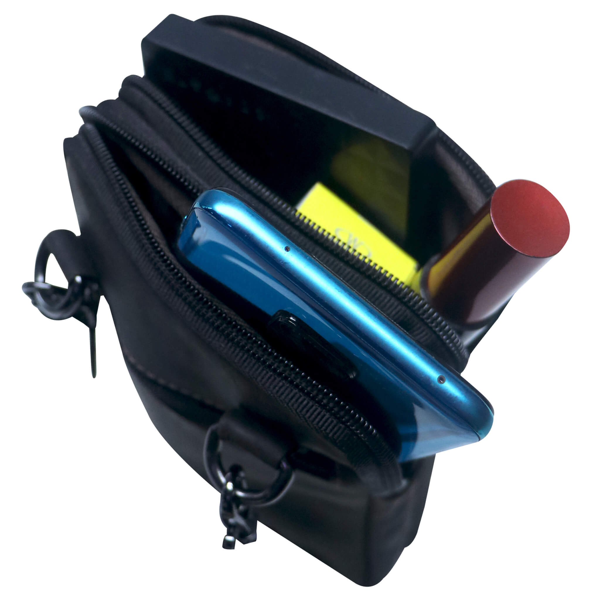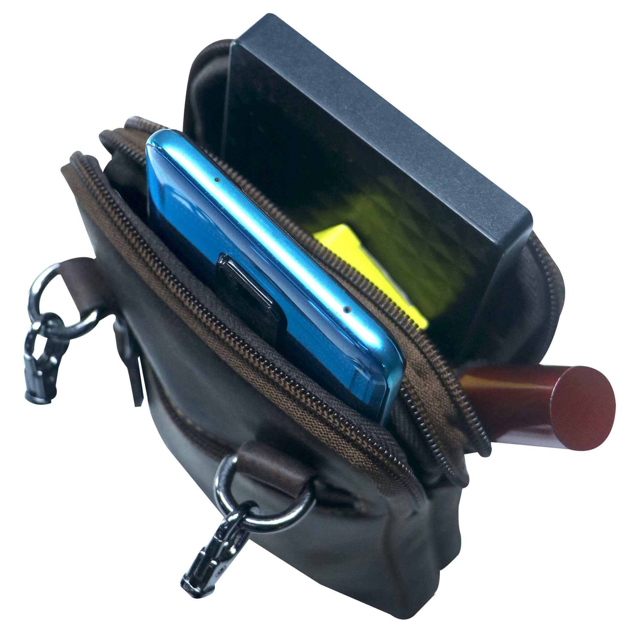 - The bag is suitable for all common smartphones and still offers space for your wallet, sunglasses, keys and other small items.