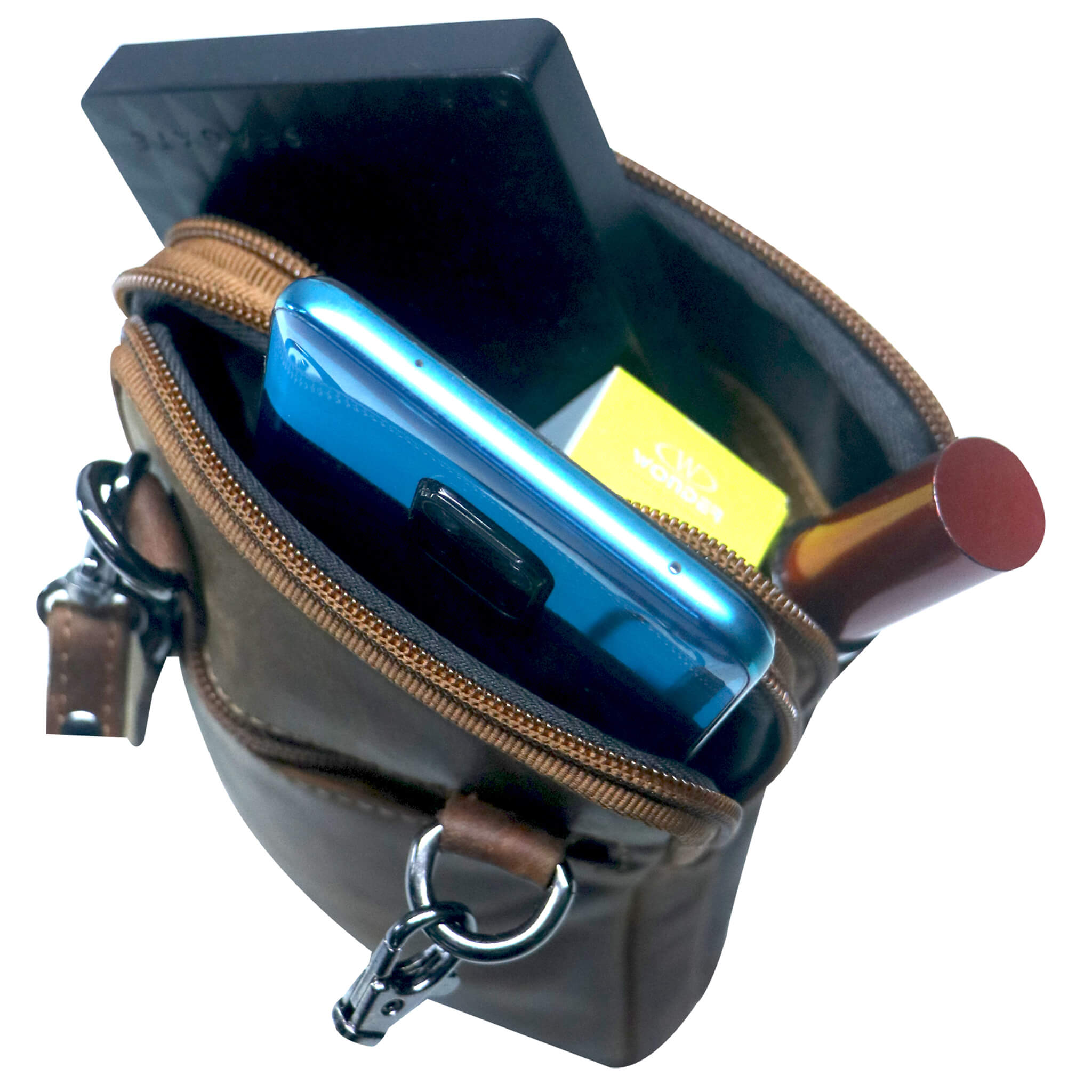 Greenwood Oli – Crossbody mini bag for men, leather zip phone bag for women.