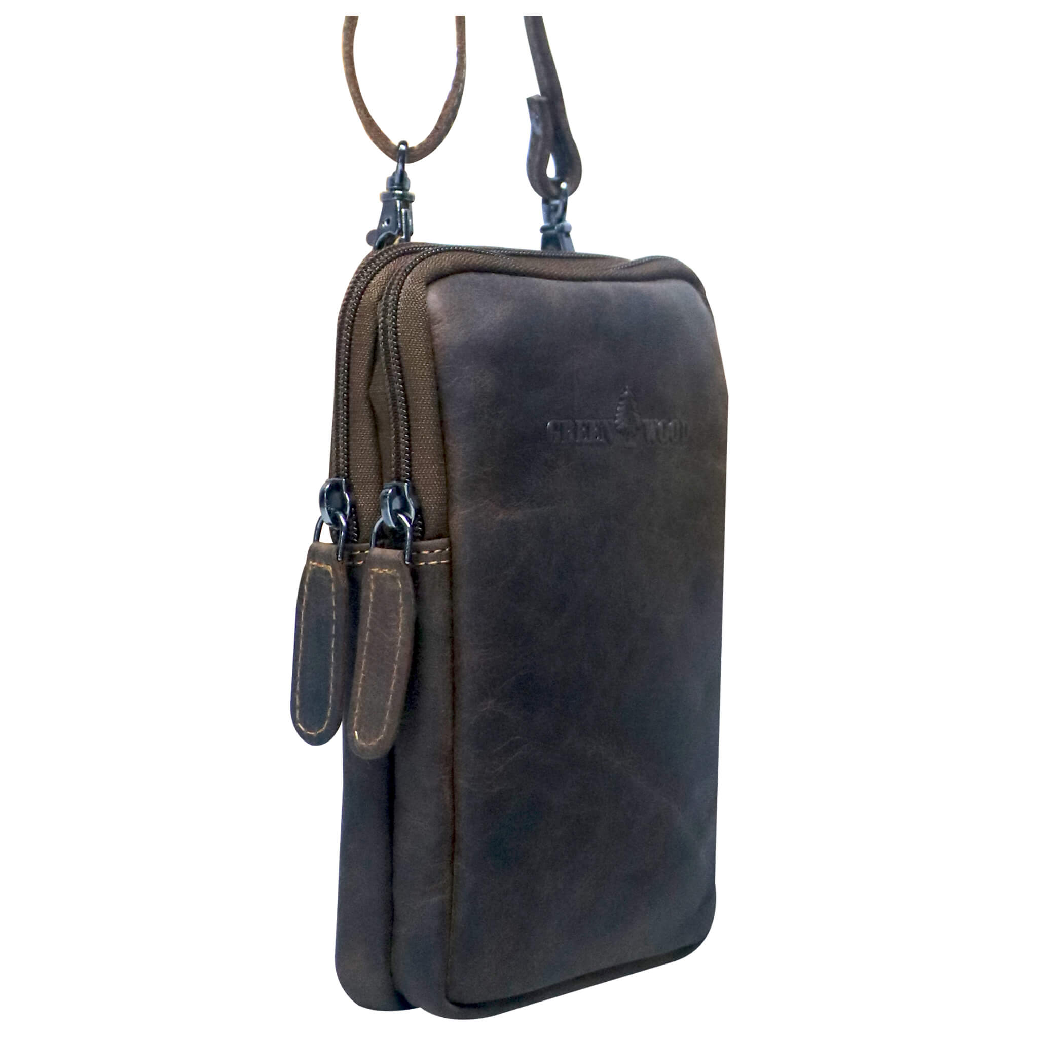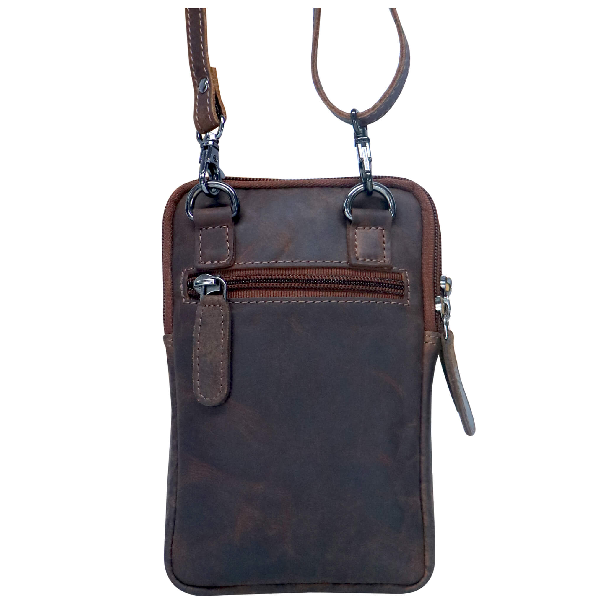 The greenwood Oli crossbody phone bag made of genuine leather is ideal for people who prefer minimalist design and functionality. It has a zip pocket with 5 card slots and offers enough space for your wallet and glasses, another zip pocket for your current smartphone and a zip pocket on the back for small items. The design is rounded off by the removable and length-adjustable full leather shoulder strap (up to 150 cm long). This great mini bag can be used by people of all genders and ages, and is also very flexible and easy to carry for everyday use.