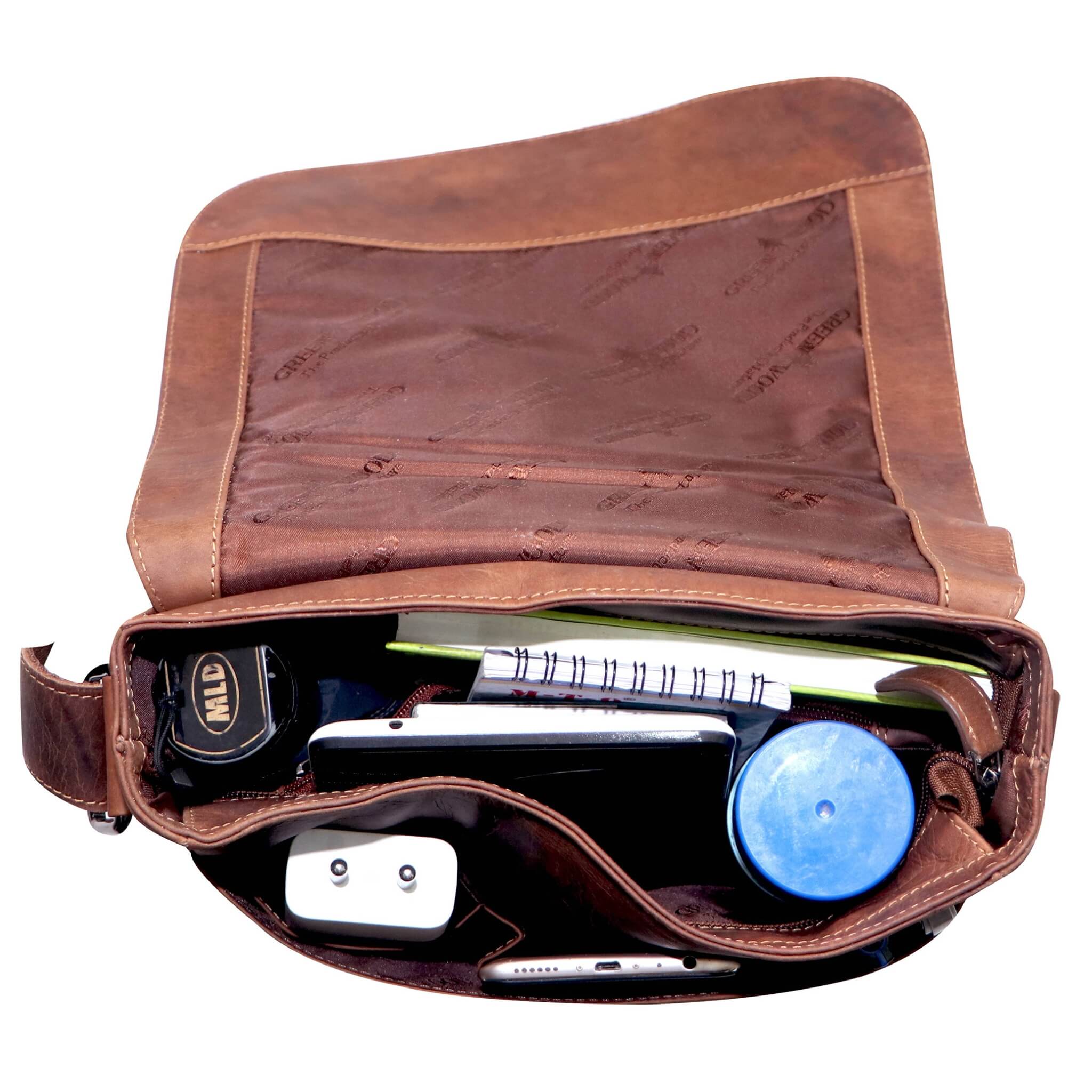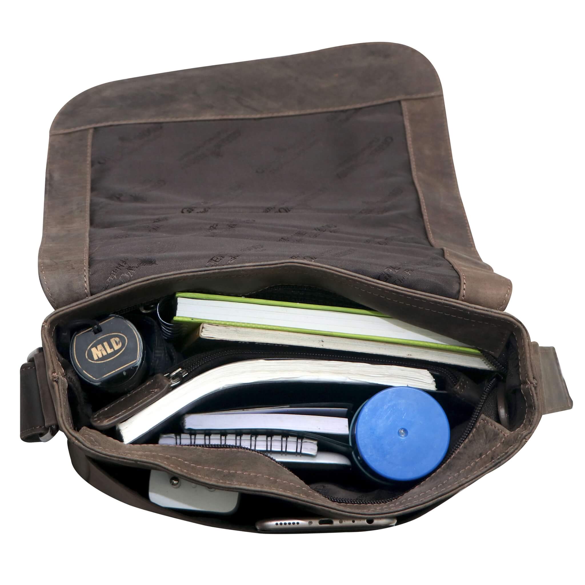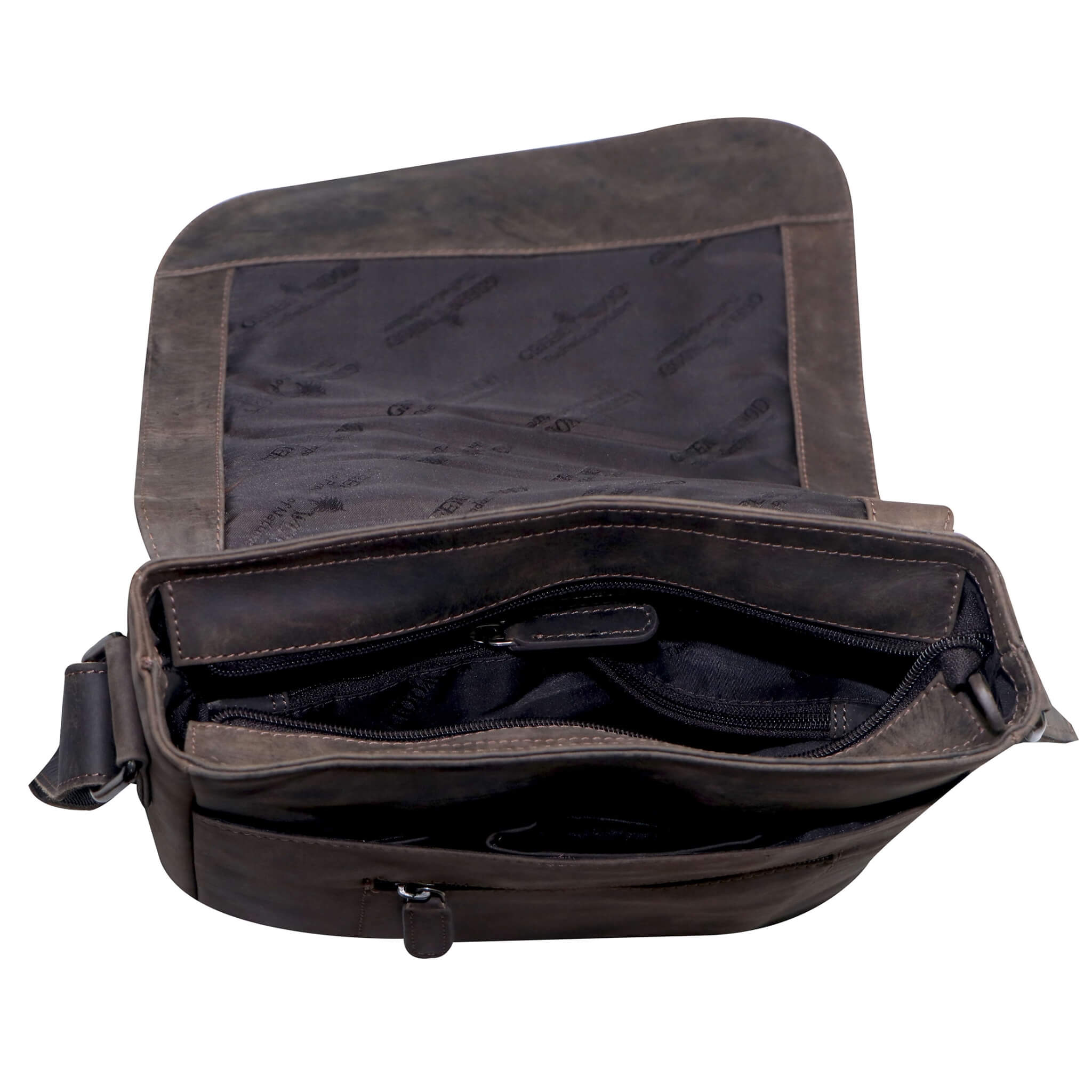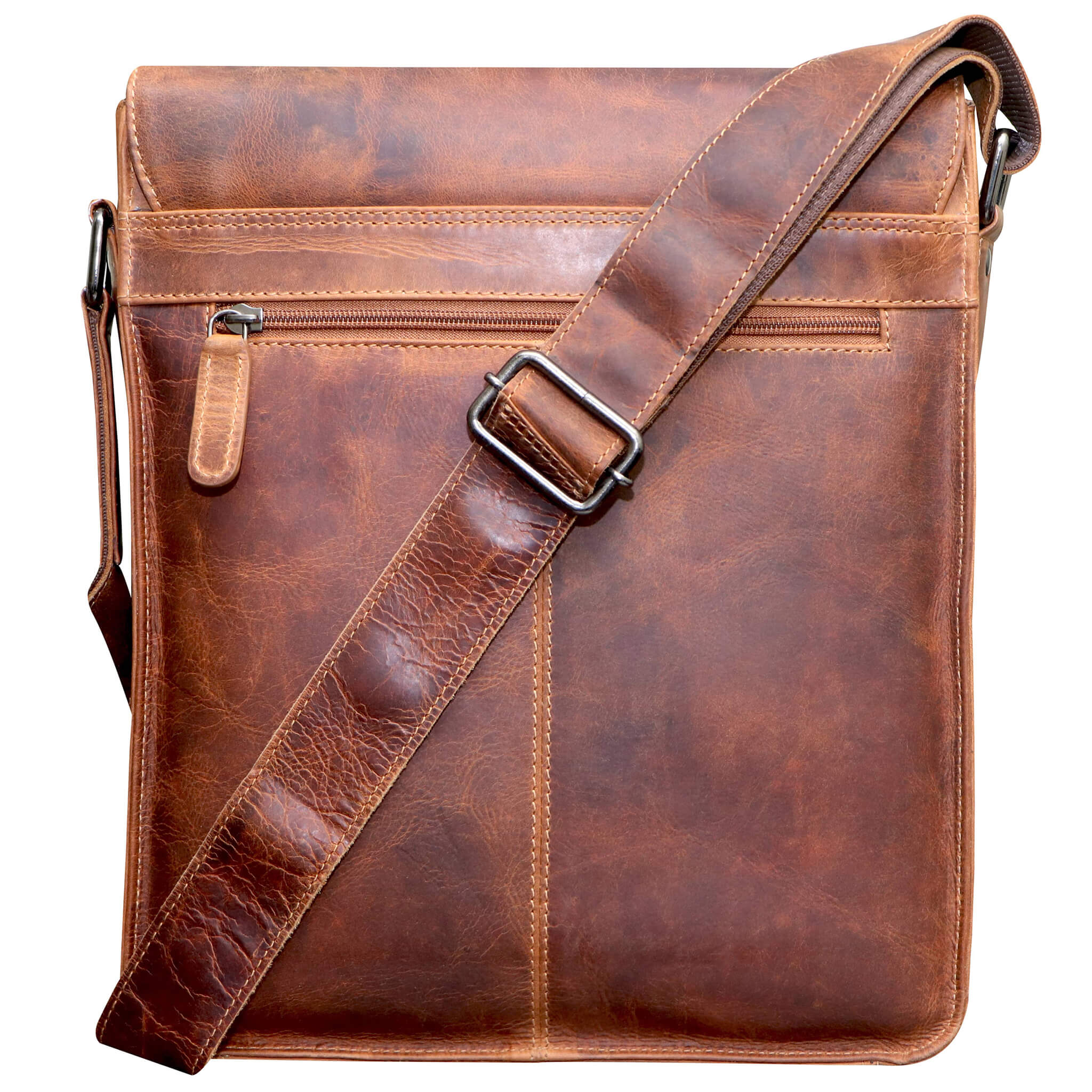 Die Hetwig kleine Umhängetasche aus Echtleder erhält durch die geölte Oberfläche einen einzigartigen, besonderen Vintage Style. Mit ihrem praktischen Magnetverschlusssystem eignet sich diese elegante Umhängetasche perfekt für DinA5-Dokumente, iPad und Tablets und sonstiges. Die Hauptinnenfächer haben ein Reißverschlussfach für Ihre Wertgegenstände. Besten Komfort und Sicherheit bietet der verstellbare Trageriemen aus Leder und robustem Nylon. Das Innenfutter aus Poly-Baumwolle ist reißfest und farblich abgestimmt. Jede dieser Taschen ist handgefertigt und besticht dadurch mit einem einzigartigen Charme.