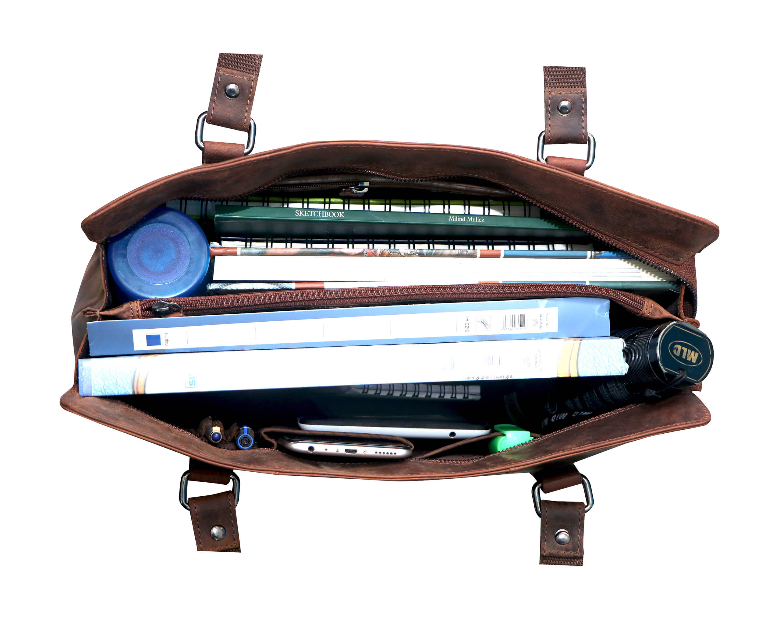 Platz für Din A4 Aktenordner (5 cm) und bis 14 Zoll Laptop.