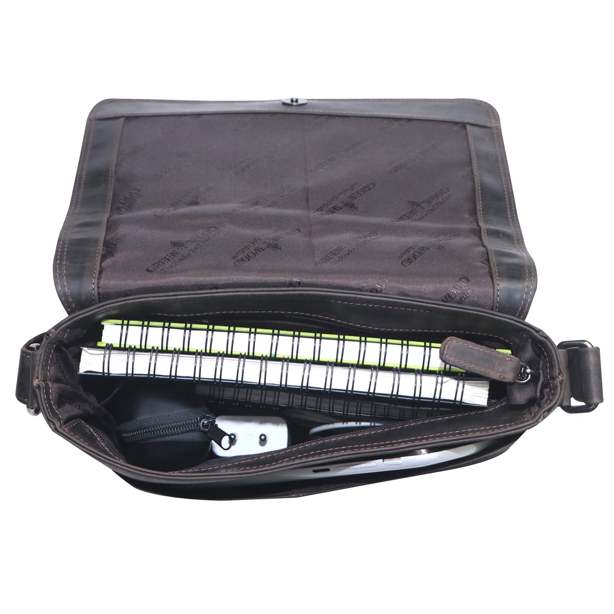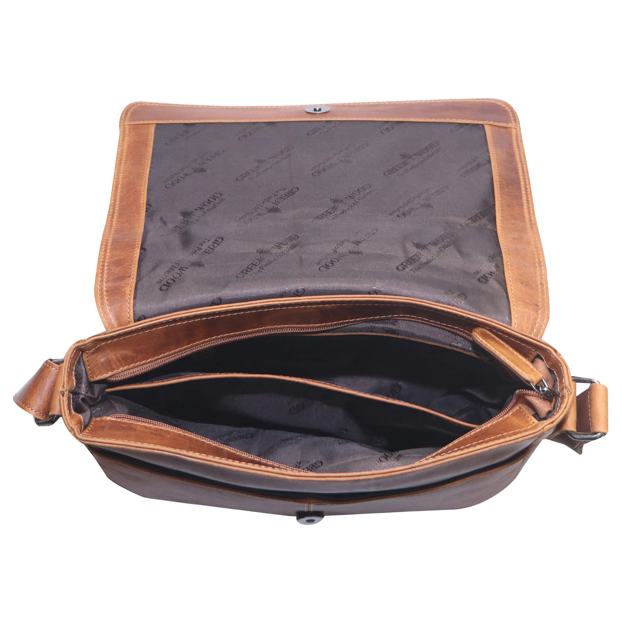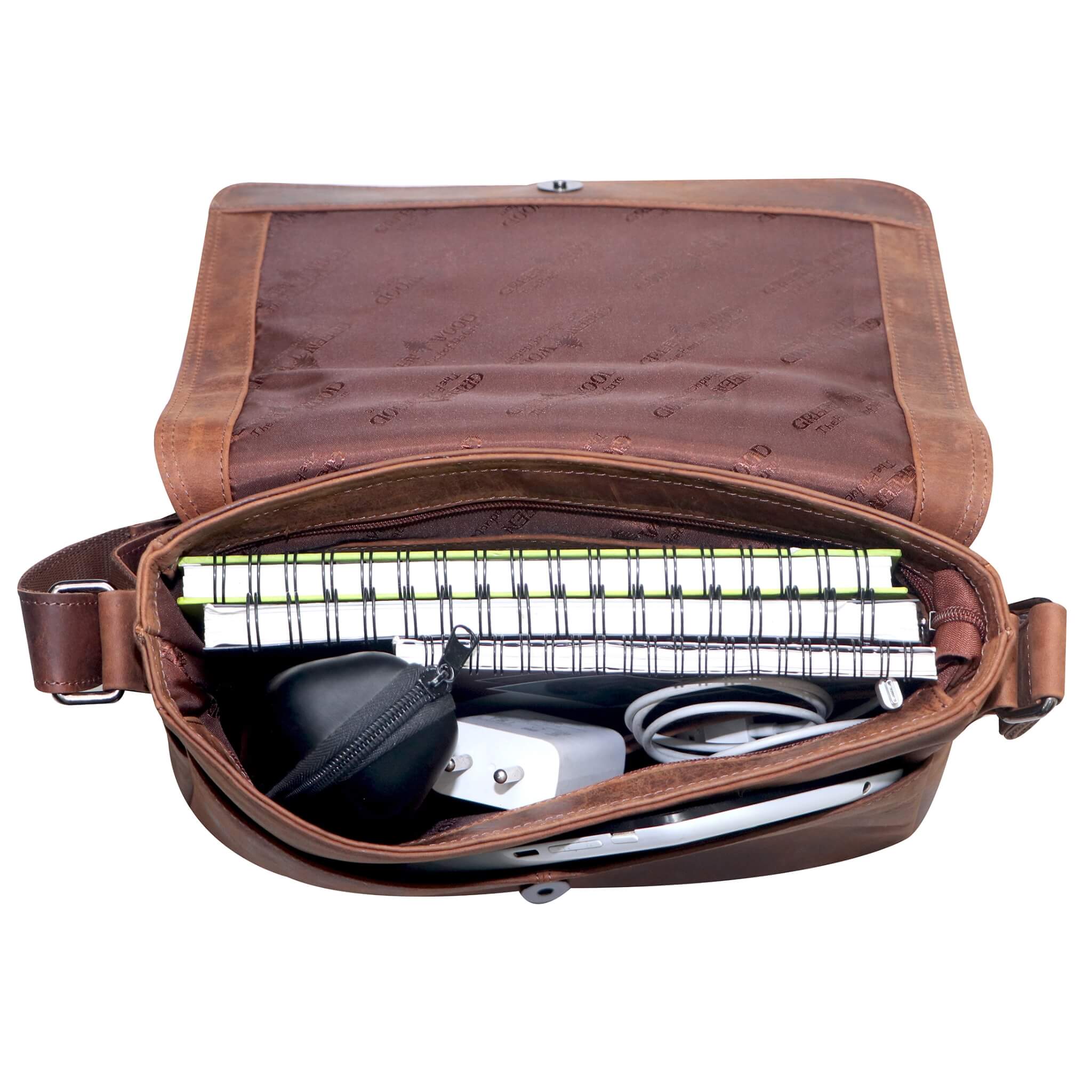 Greenwood Ralf is a compact shoulder bag made of genuine leather with a vintage look. For carrying hand-sized everyday objects, such as tablets, notepads, writing utensils, wallets, etc., there is no better substitute for the usually oversized laptop bag or backpack than a compact and elegant leather bag. Pens and valuables can be stored in the inner compartments or in the practical pen holders. The small shoulder bag is the perfect companion for leisure or travel. Both your mobile phone and your A5 booklet can be comfortably accommodated in the main compartment of the bag. Many additional compartments offer enough space for your individual organization and the bag can be carried very comfortably with the comfortable shoulder strap. All Greenwood products are handmade and made from genuine leather, giving each bag a unique identity.