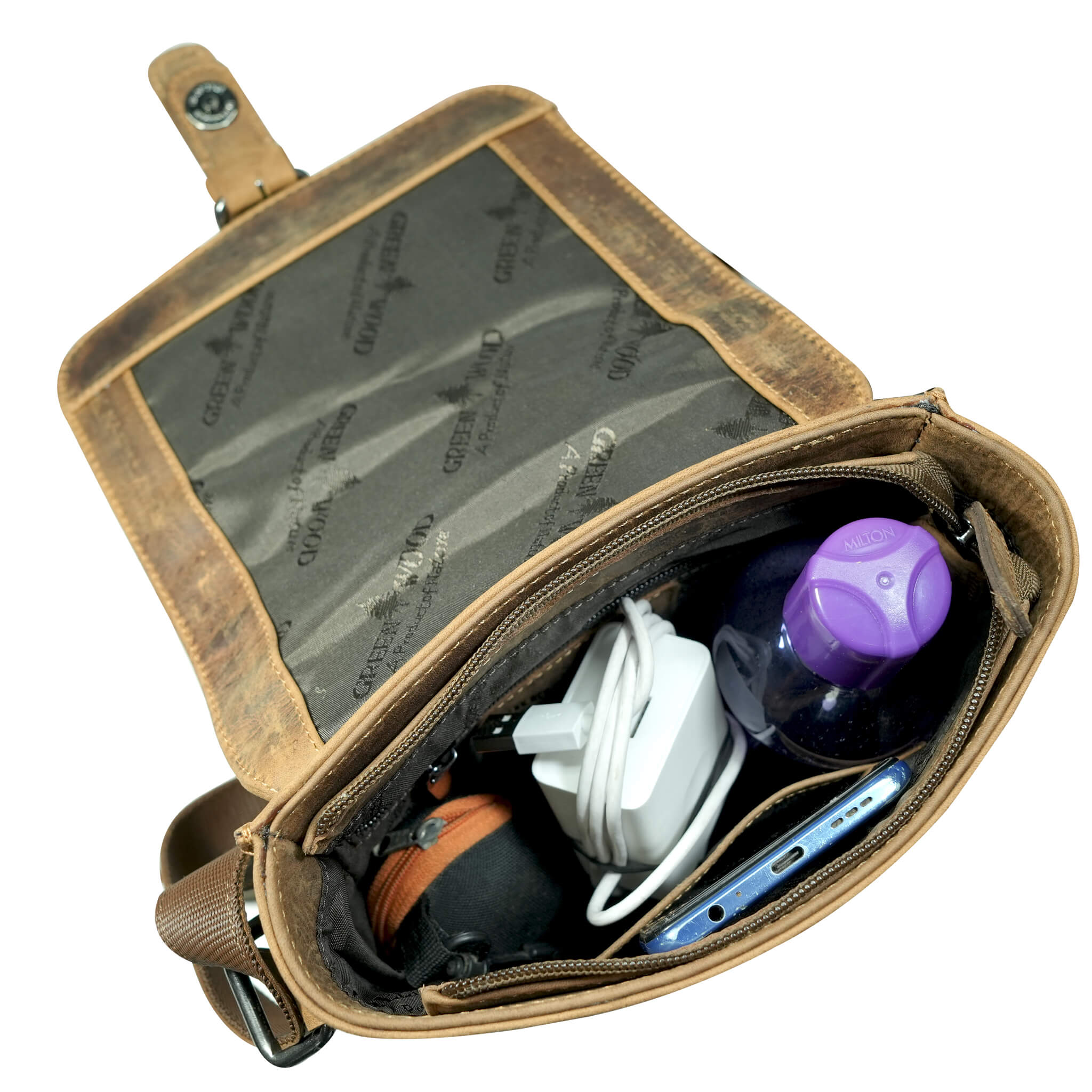 Greenwood Rio - Vintage leather crossbody bag for women, Small shoulder bag for men.