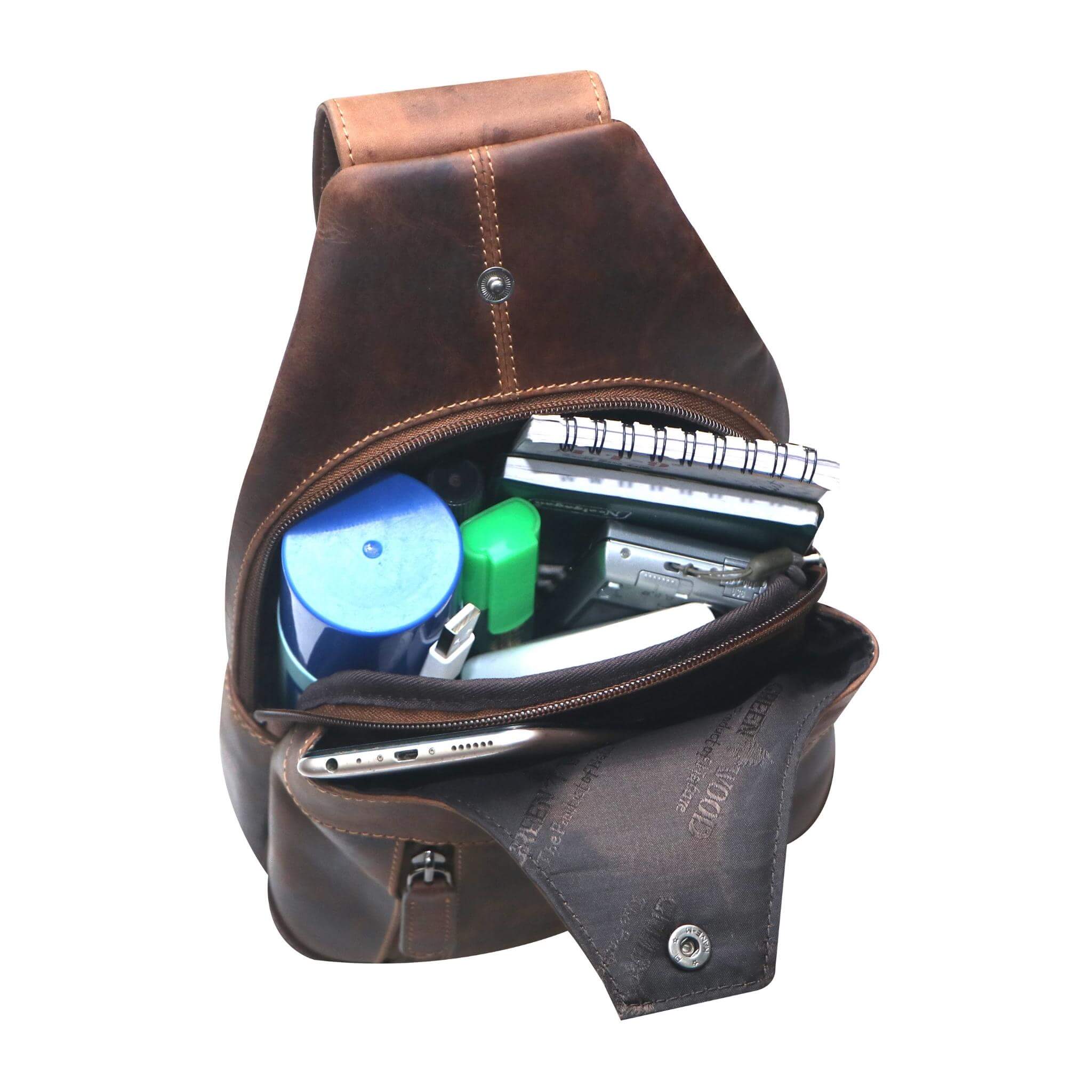 Greenwood Tom - Leather sling bag women, Shoulder bag backpack, Chest bag men.